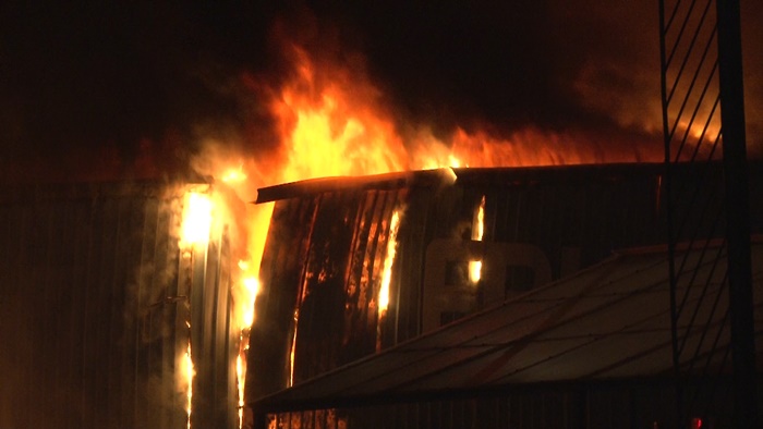 CITESTE SI: Incendiu devastator langa Timisoara. Flacari uriase au cuprins fabrica Frigoglass. Foto si video