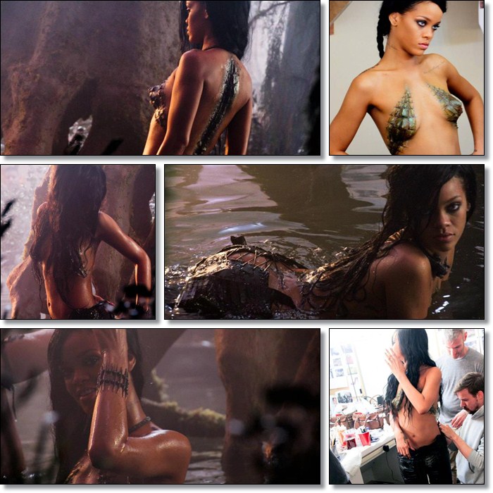 Clipul, lansat luna trecuta, o prezinta pe Rihanna foarte sumar imbracata. Iese din apa plina de mister, asemenea unui animal de prada. Totusi, artista nu apare complet goala. Sanii ei sunt pictati si acoperiti cu diverse accesorii, prin care se vede doar forma.