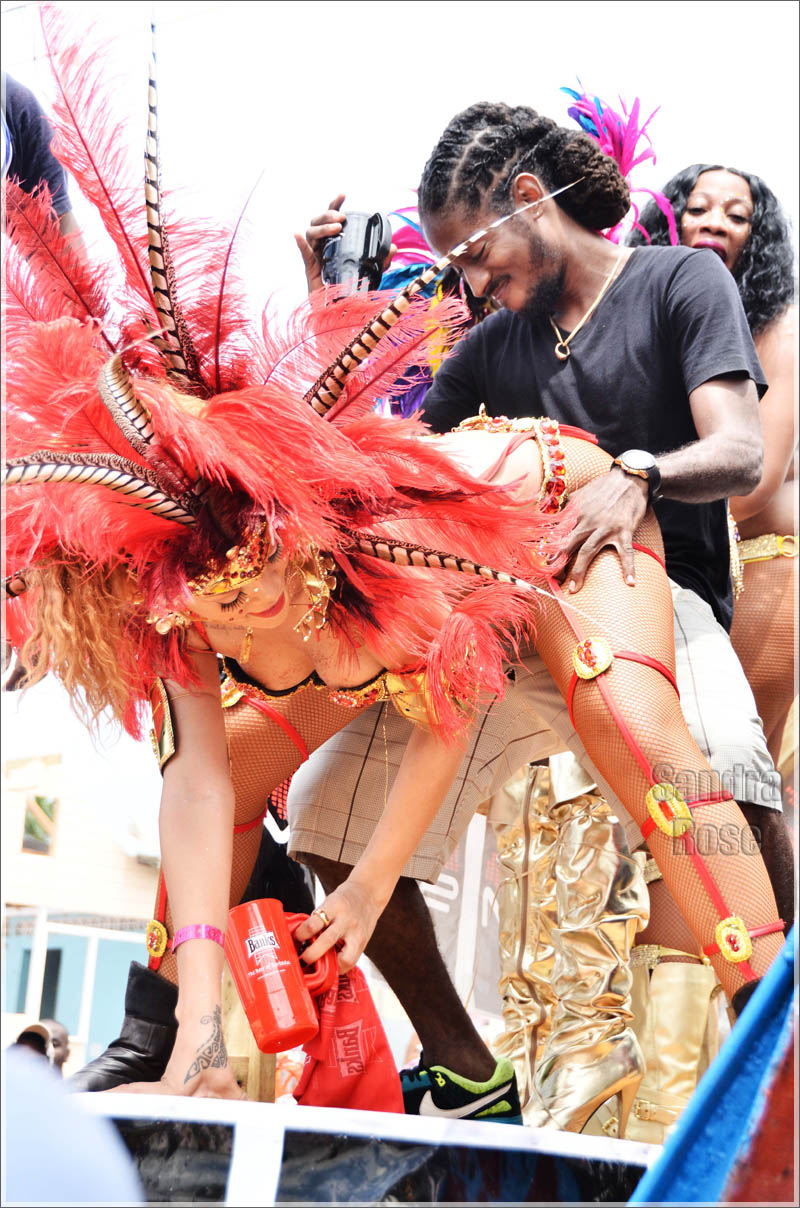 Starul de muzica pop Rihanna s-a dezlantuit in cadrul unui festival traditional din Barbados, zona sa natala. Vedeta a aparut intr-o tinuta pe cat de sumara pe atat de provocatoare: un sutien foarte decupat si niste ciorapi tip plasa.