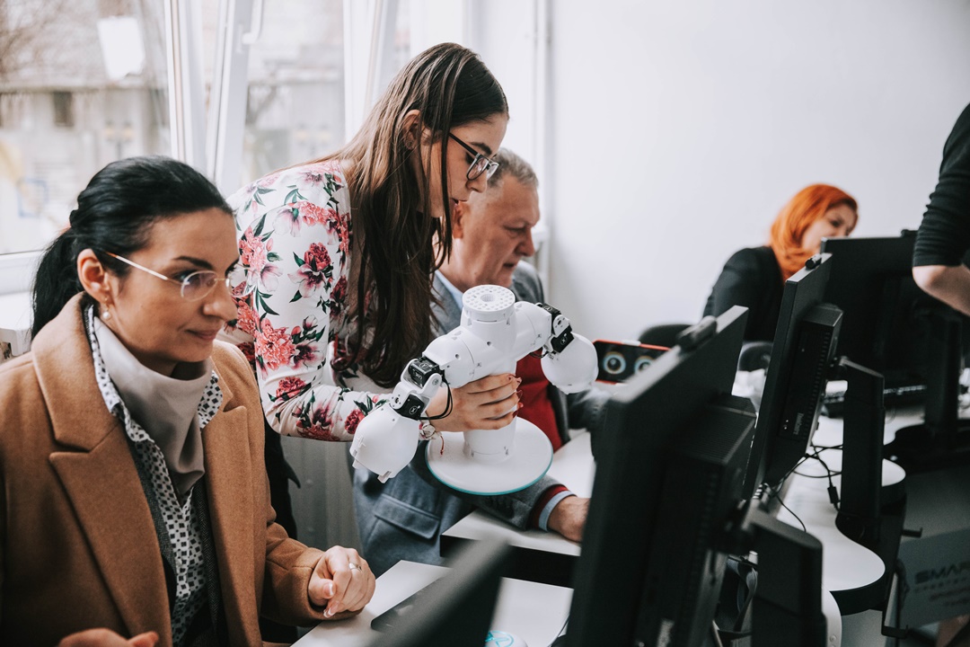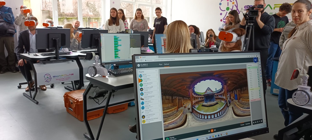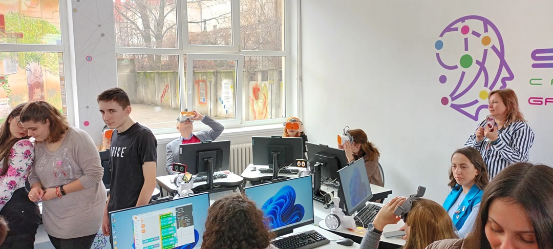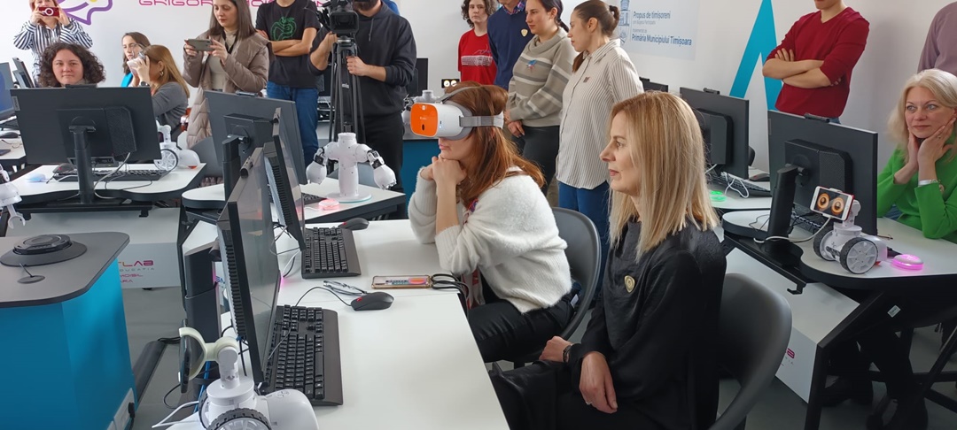 Roboti, calculatoare de ultima generatie si ochelari de realitate virtuala in noul smart lab pentru elevii din Timisoara. Foto