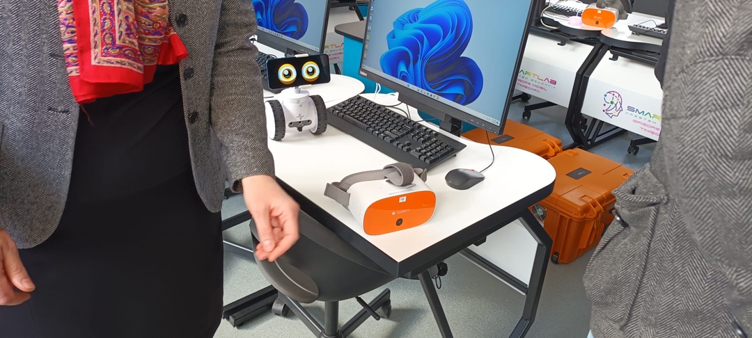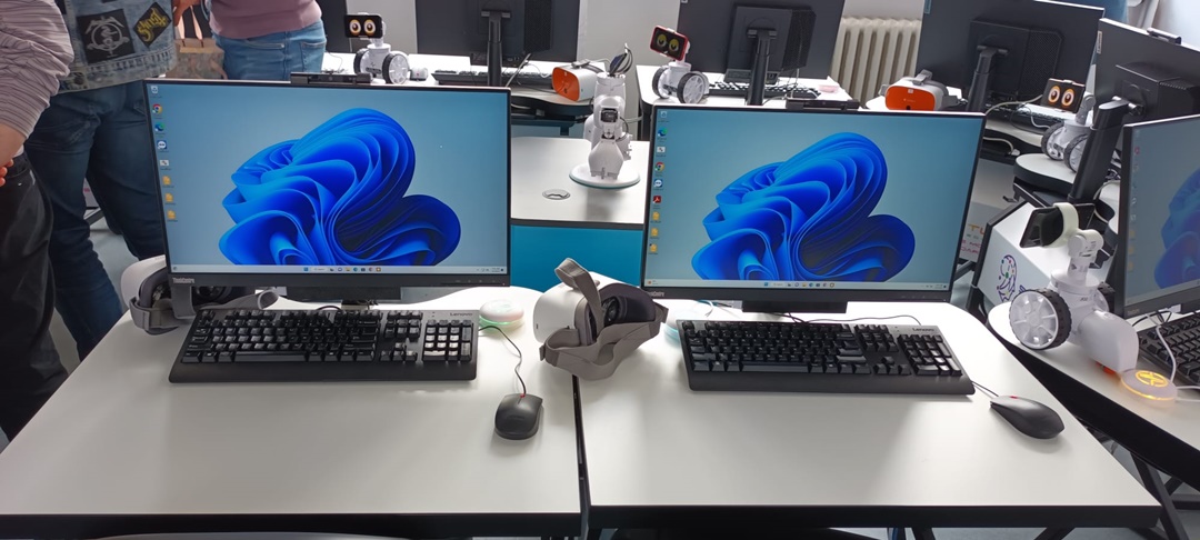 Fiecare dintre dispozitive este prevazut cu casti RV, iar laboratorul este dotat si cu robotei educationali. Acestia din urma pot fi programati sa ajute la cursurile de informatica sau matematica, dar pot face si desene sau miscari de gimnastica.