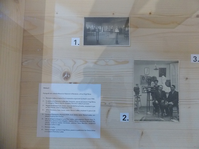 Iubitorii de arta pot vedea sculpturi semnate de Romulus Ladea, precum “Closca”, “Bustul lui Ionut Birou” sau “Portertul pictorului Tasso Marchini”, dar si lucrari semnate de Aurel Ciupe, Catul Bogdan, Peter Jecza sau Lucia Piso Ladea. In fotografii pot fi descoperite cadre din viata de zi cu zi a lui Romulus Ladea, infatisandu-l alaturi de familie sau de discipolii sai.