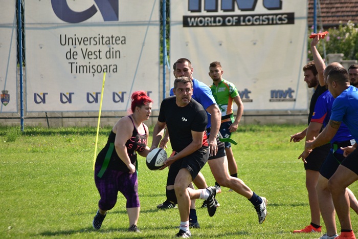 Pe o vreme superba, 89 de adulti si 36 de copii de toate varstele au format echipe mixte alaturi de jucatorii campioanei Romaniei la rugby, Timisoara Saracens, si au vazut pe propria piele ce inseamna sa participi intr-o intrecere cu balonul oval. S-a jucat dupa regulile din rugby-ul tag, contactul nefiind permis, iar in teren au intrat actualii rugbysti ai campioanei, fosti rugbysti, micutele handbaliste de la Leu Giarmata, dar si simpli iubitori ai sportului cu balonul oval.