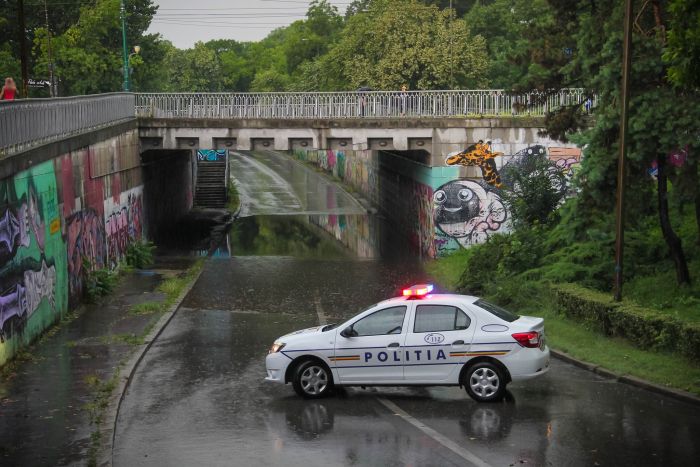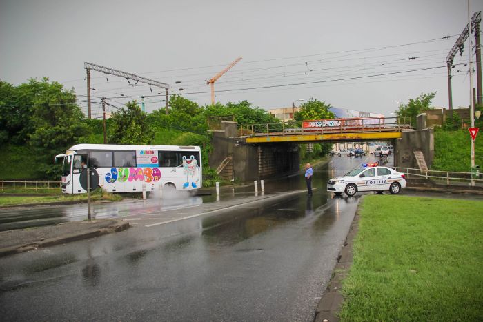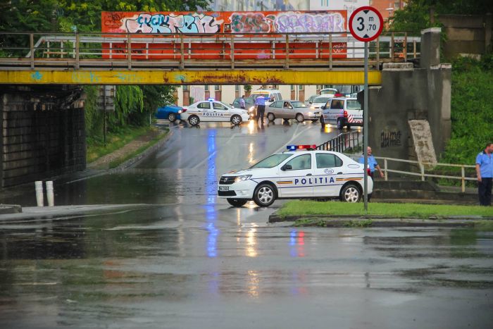 Un alt cititor opiniatimisoarei.ro, caruia de asemenea ii multumim, ne-a trimis fotografii din timplul ploii de la Timisoara. In poze se pot vedea pasaje inundate, dar si masini de politie care au blocat intrarea masinilor in aceste pasaje, precum si masini de pompieri pregatite sa intervina.