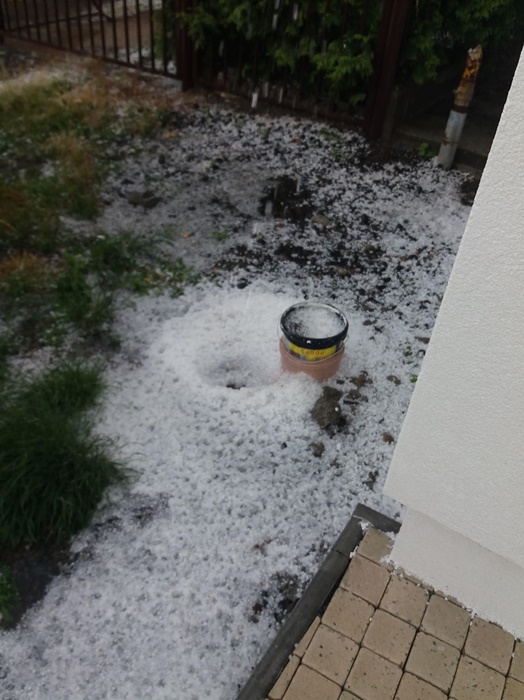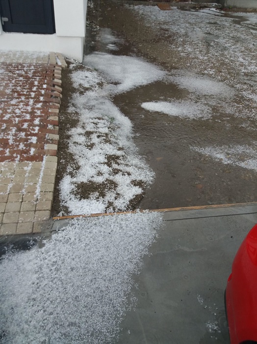 In zona Sannicolau Mare s-au rupt norii si a batut piatra. Grindina a cazut pret de un sfert de ora si a acoperit gradini si drumuri.