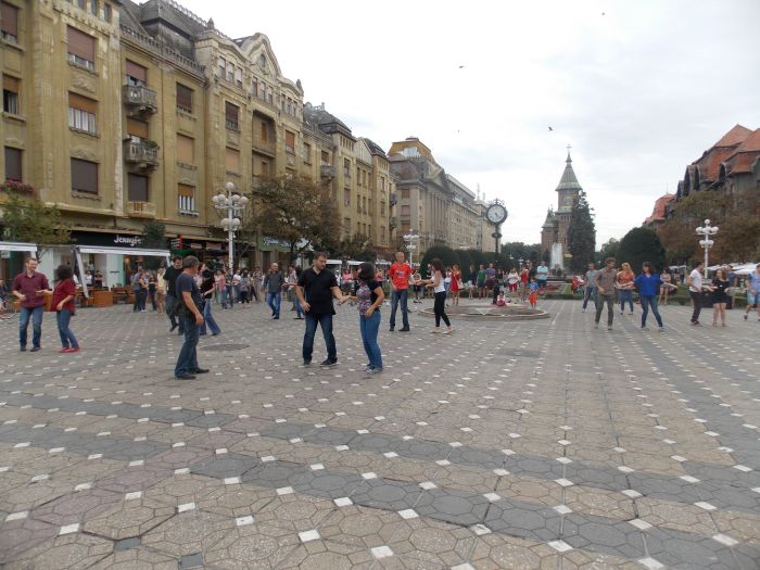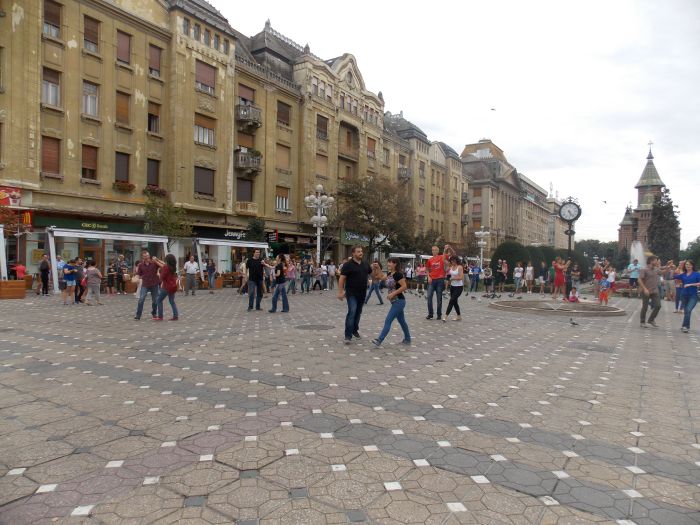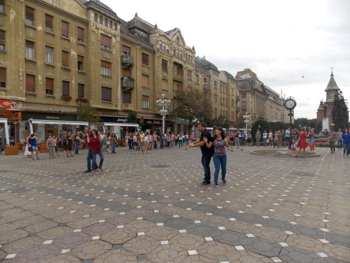 TIMISOARA. 30 zeci de dansatori au participat la un flash mob in Piata Operei din Timisoara, sambata dupa-amiaza. Acestia au interpretat o coregrafie de West Coast Swing pe melodia “Want to want me” de Jason Derullo.
