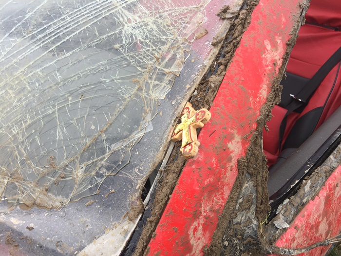 Masina a suferit daune serioase, partea stanga fiind facuta praf, iar dintre toate geamurile masinii, doar parbrizul a mai ramas in locul sau, insa si acesta crapat.