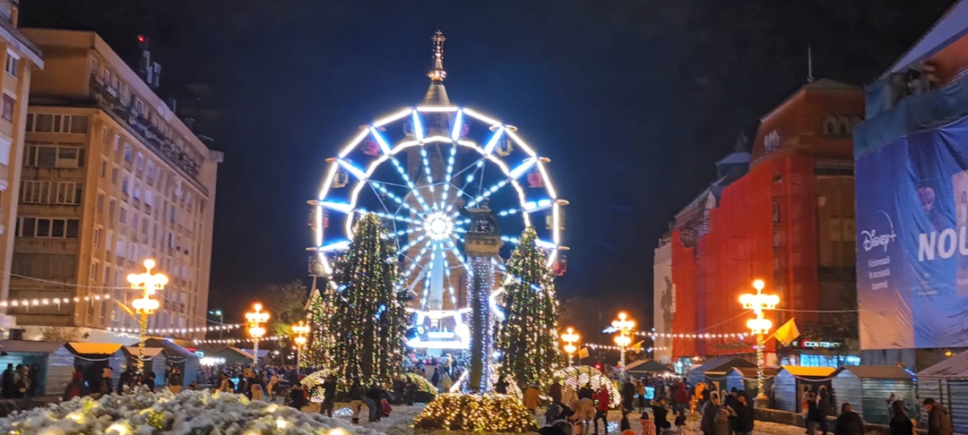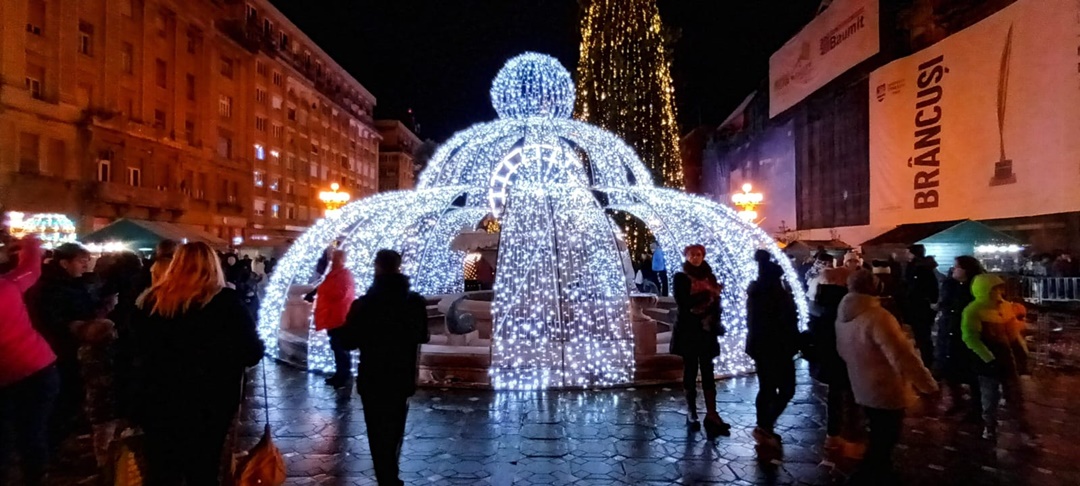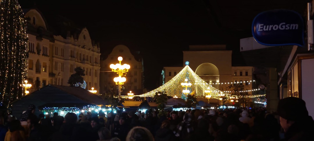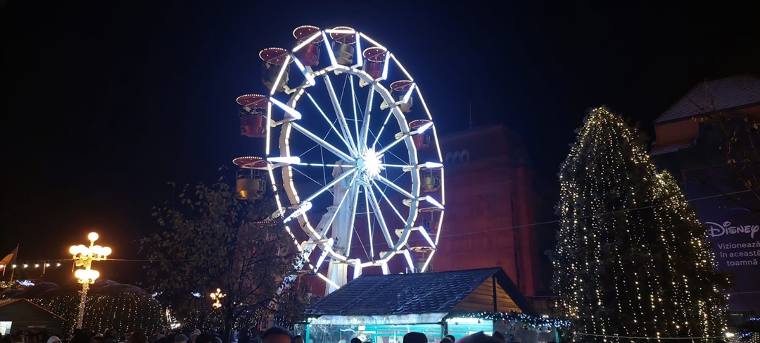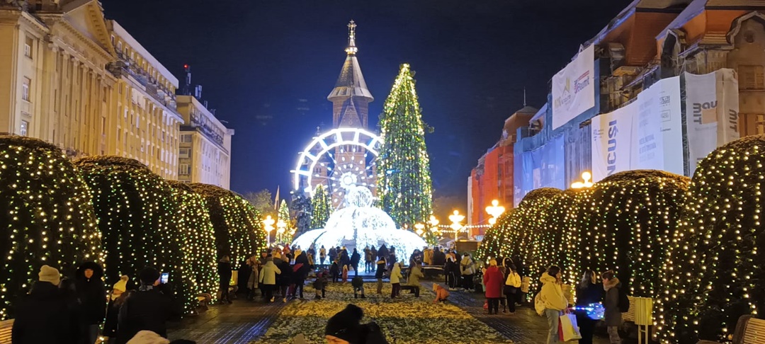 In centrul orasului s-au aprins ghirlandele de luminite, bradul si roata panoramica, caruselul, iar casutele, verzi de asta data, si-au deschis tejghelele oferind timisorenilor bunatati de tot felul, ornamente de Craciun si cadouri.