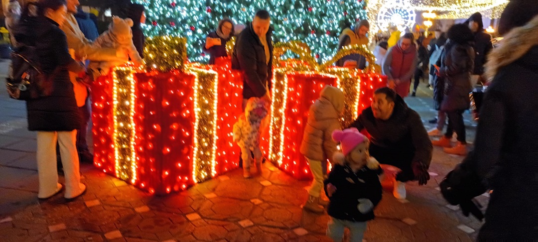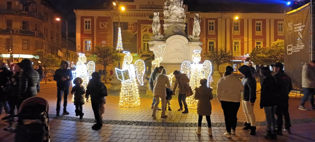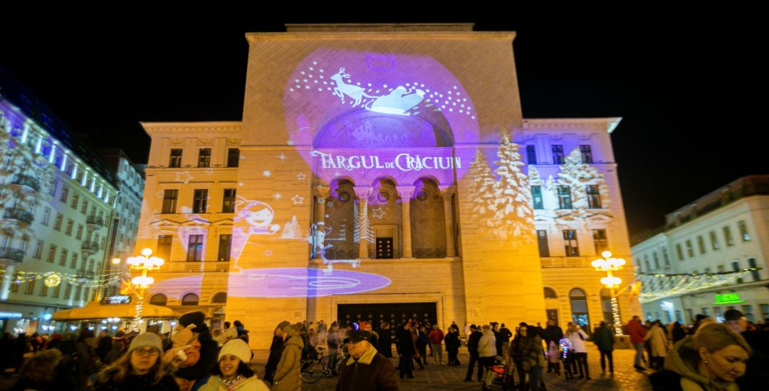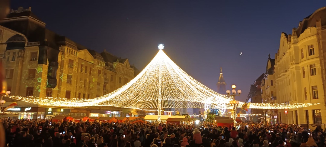 Nu doar decoratiunile si ornamentele din Piata Victoriei, ci si patinoarul de la Modex si proiectiile pe cladiri din Piata Libertatii au starnit curiozitatea timisorenilor care au participat la deschiderea Targului de Craciun 2022.