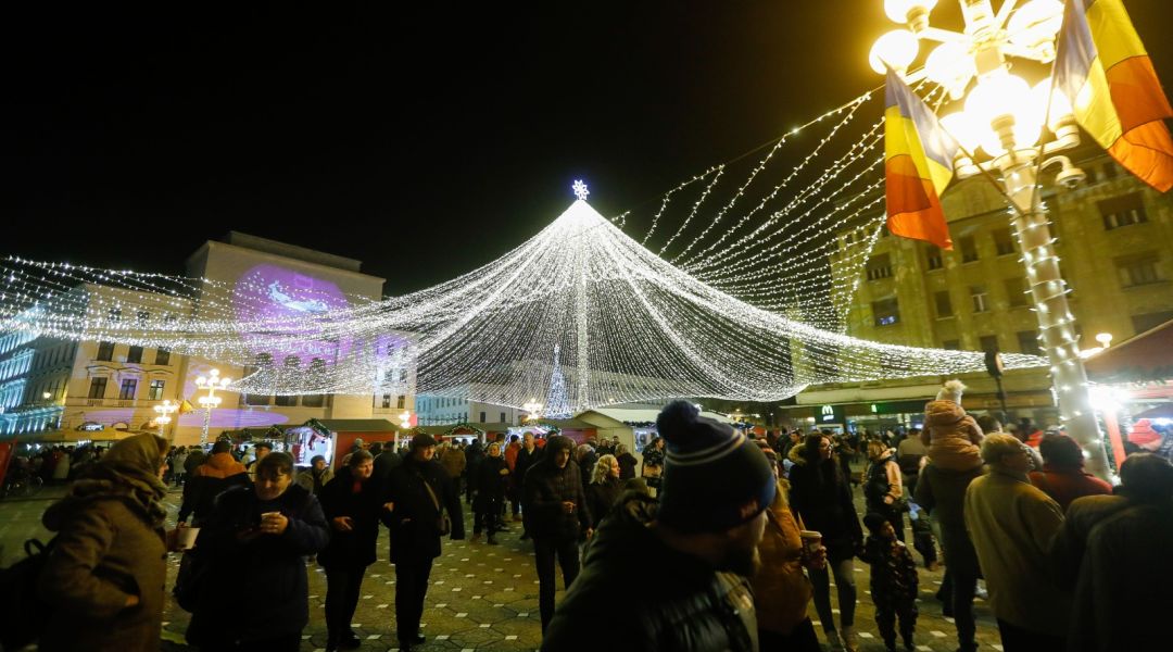 TIMISOARA. Atmosfera de sarbatoare a cuprins si Timisoara, unde s-a deschis, duminica seara, Targul de Craciun.