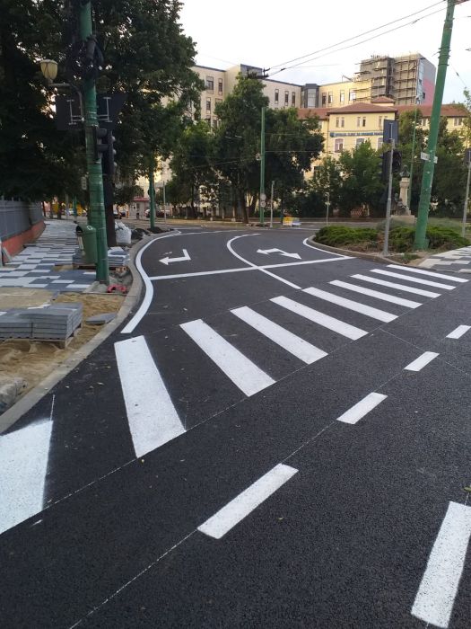Reprezentantii municipalitatii au turnat asfalt proaspat si au trasat si marcajele rutiere.