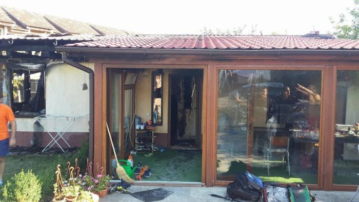 In urma incendiului, a ars casa in intregime, datorita elementelor constructive – structura de lemn, placi OSB si polistiren (bucatarie si 2 dormitoare). Totusi, pompierii au reusit sa salveze doar terasa si jumatate dintr-o camera.