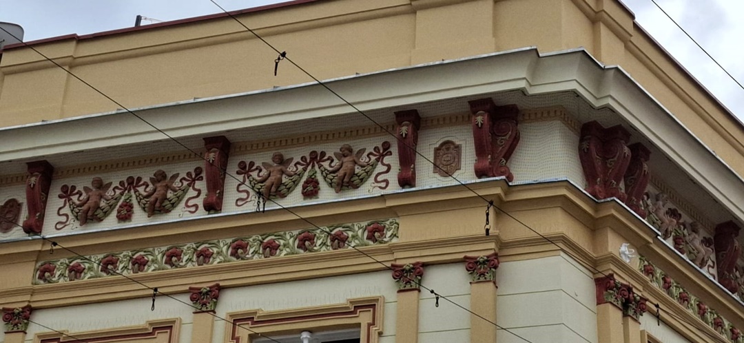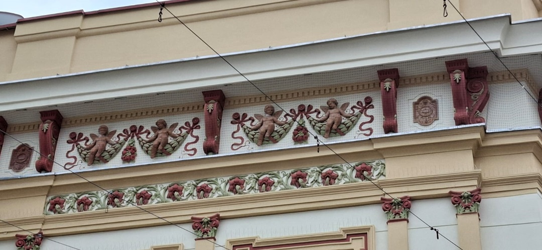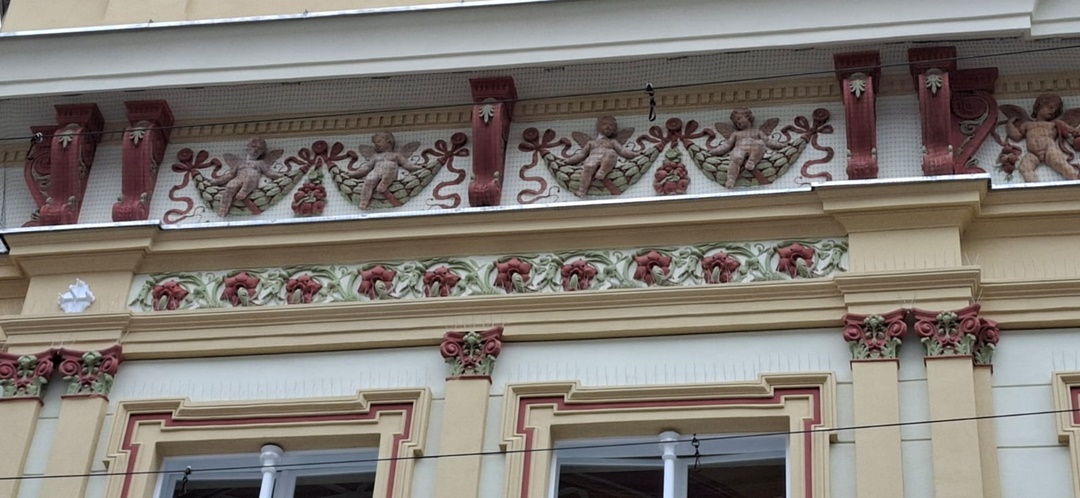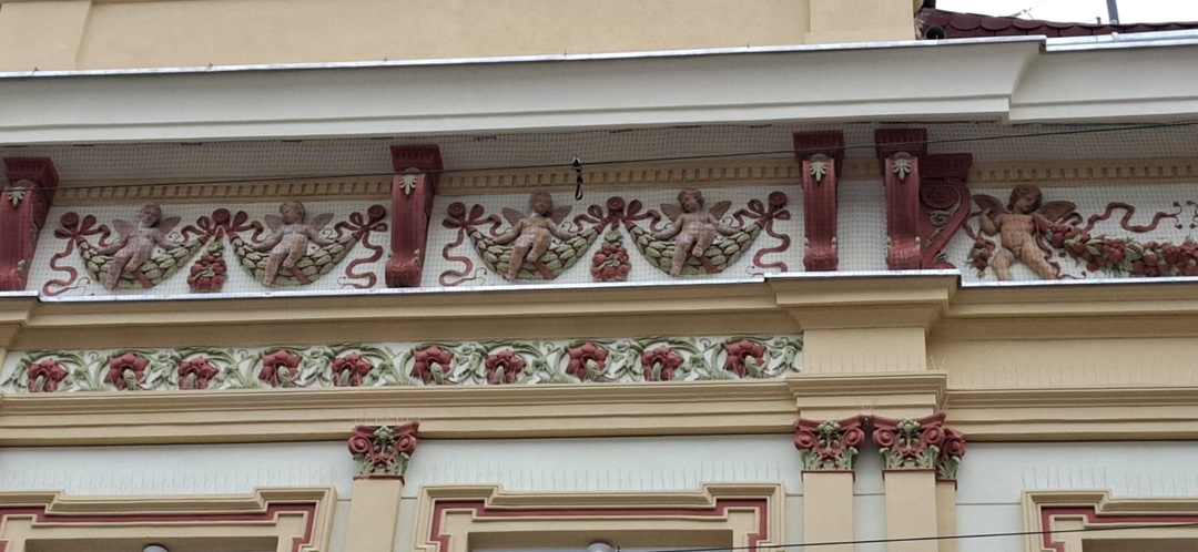 Lucrarile au fost deja terminate la etaje, iar, decoratiunile cu ingerasi inconjurati de flori, care au fost restaurate, au si fost acoperite cu o plasa de protectie impotriva porumbeilor, astfel ca pasarile sa nu le poata deteriora.