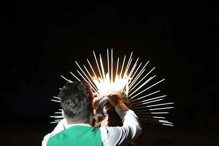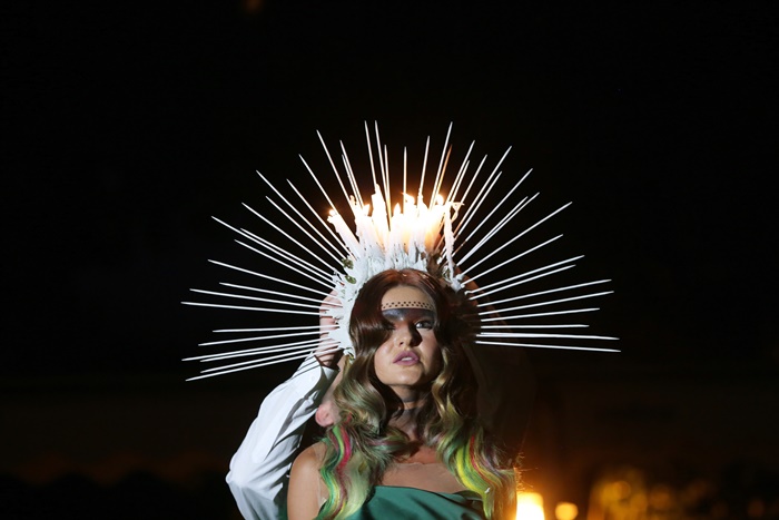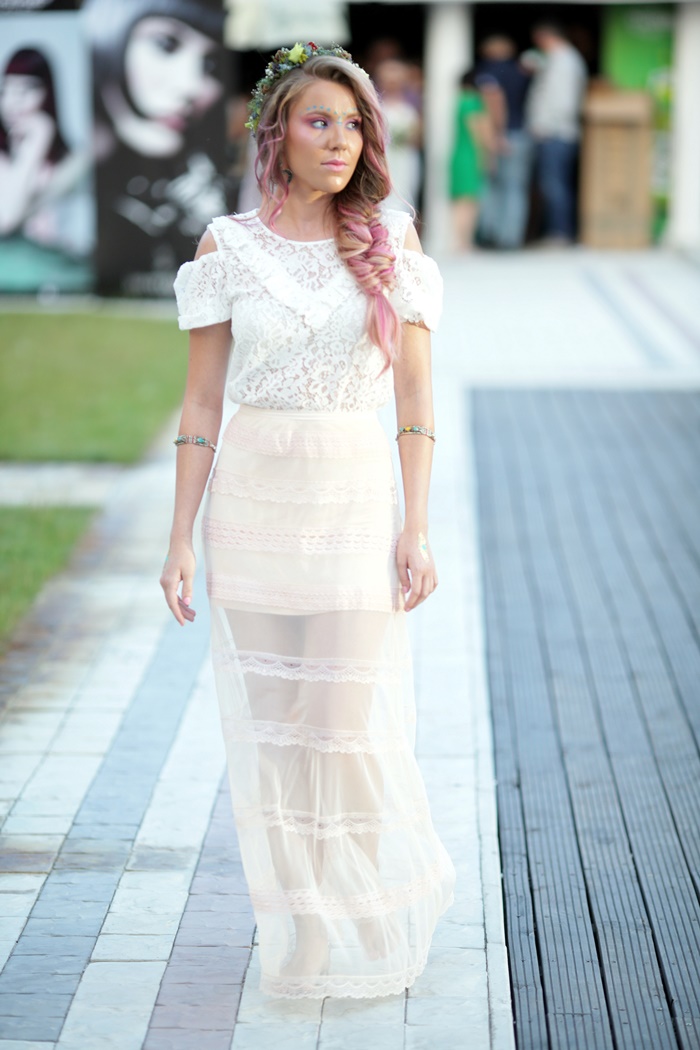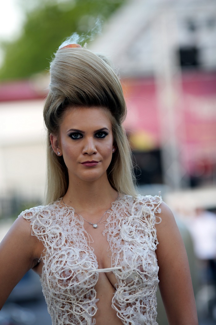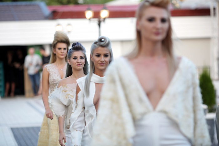 Organizatorii promit ca nu se opresc aici. Daca anul trecut punctul forte al evenimentului a fost o rochie de mireasa realizata din par natural, de data aceasta miseara colectiei s-a aliniat celor mai in voga tendinte si a defilat pe scena cu o diadema ornata cu lumanari aprinse.