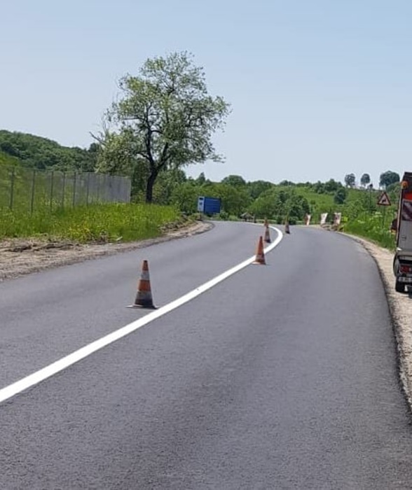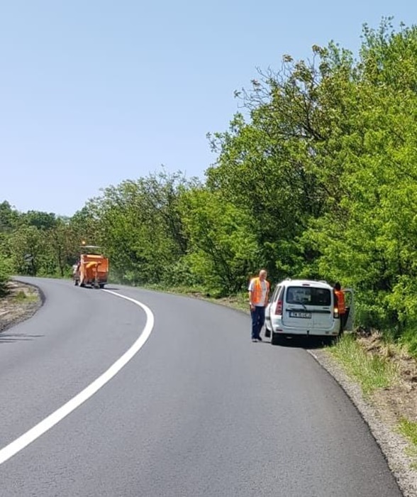 Reparatiile s-au incheiat pe primii 4 kilometri, iar muncitorii au trecut la trasarea marcajelor rutiere.