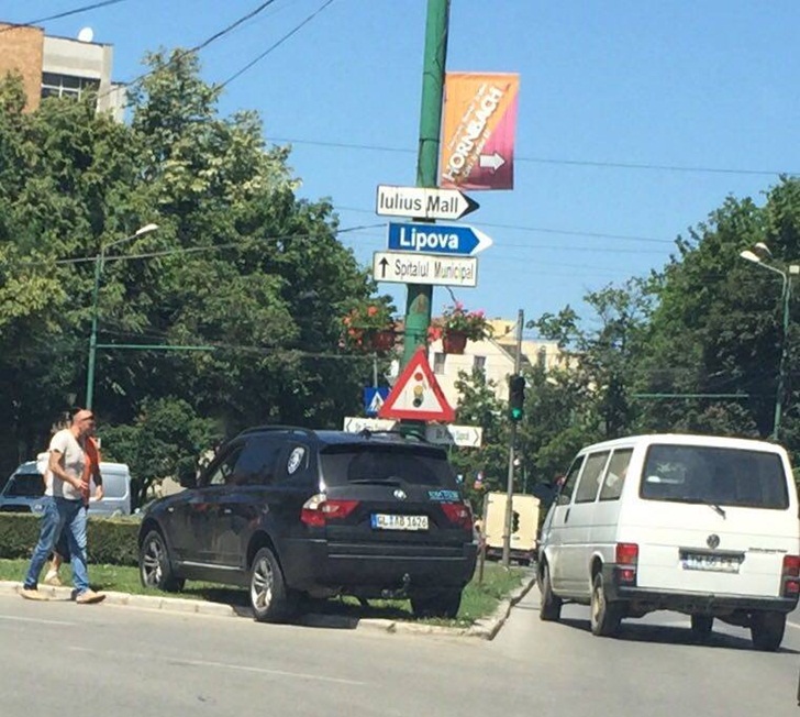 Un BMW a fost acrosat de catre o autoutilitara, iar in urma impactului a fost proiectat pe unul dintre scuarurile din intersectie, unde a izbit un indicator rutier, pe care l-a pus la pamant.