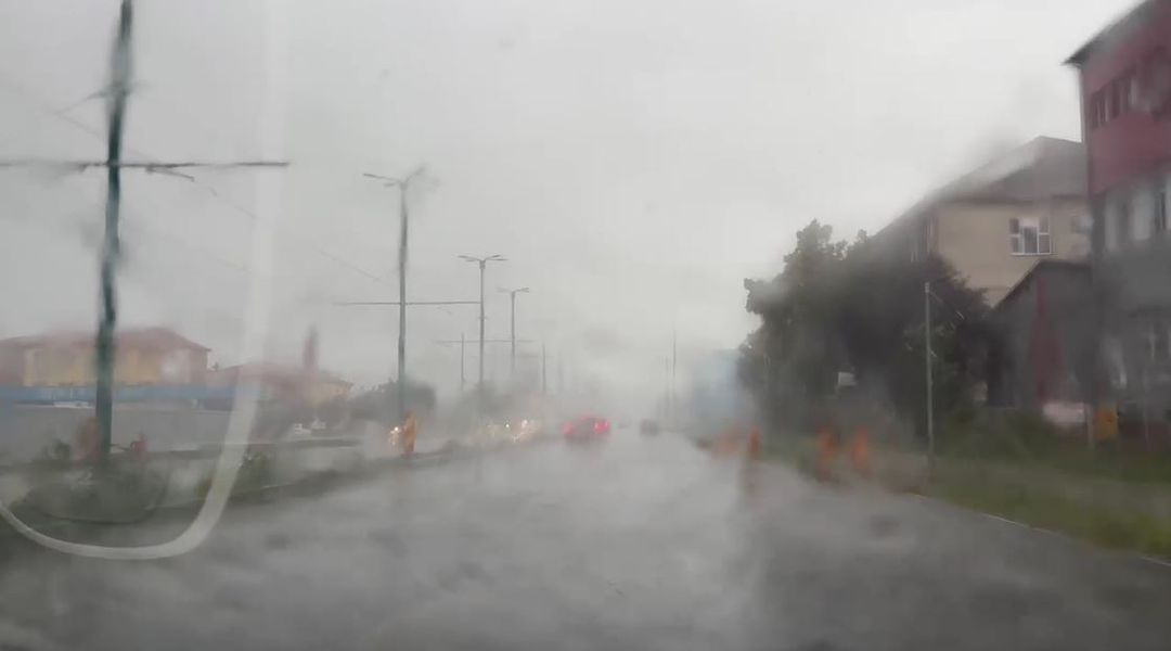 A batut vantul cu putere, iar cantitatile mari de apa au inundat mai multe strazi din oras.