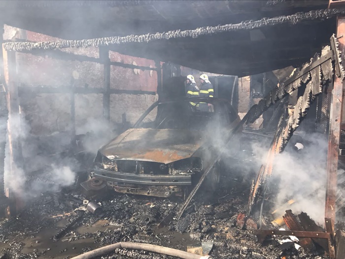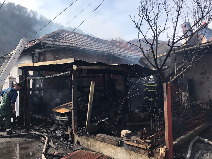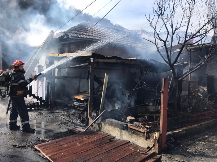Flacarile au pornit in apropierea unei case din Petrosani, in garajul in care se afla si o masina. Focul s-a extins rapid, ajutat si de materialele din care era construit garajul.
