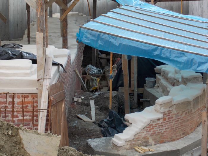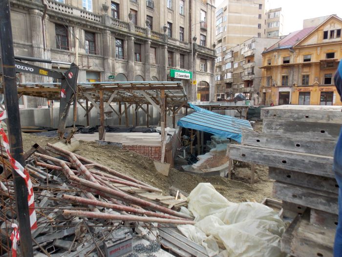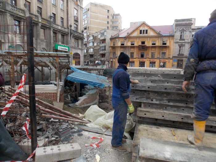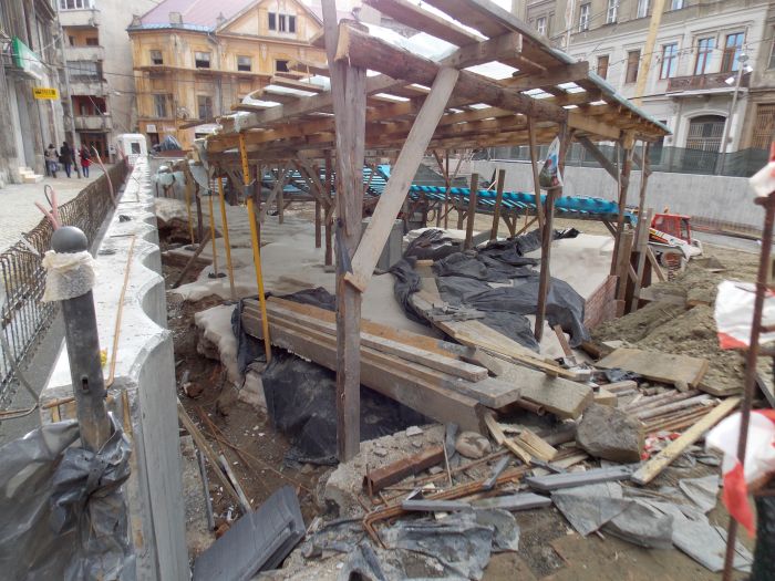 TIMISOARA. Lucrarile de modernizare a centrului istoric cuprind si Piata Sfantu Gheorghe, unde se lucreaza de zor la conservarea sitului arheologic. Unele dintre panourile de protectie au fost inlaturate si se lucreaza si la acoperirea zonei care trebuie betonata.