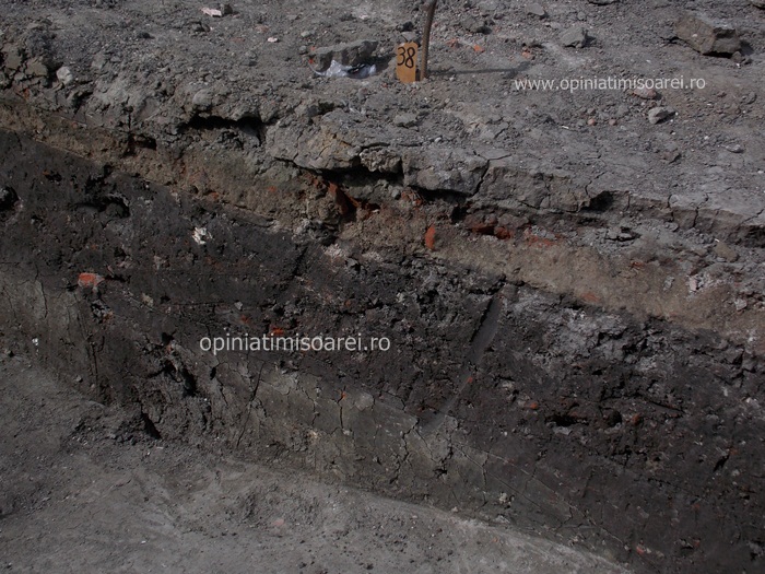 Printre straturile de pamant analizate de cercetatori se poate vedea cu ochiul liber unul gros de cenusa, de pe vremea cand Eugeniu de Savoya cucerea cetatea Timisoarei.