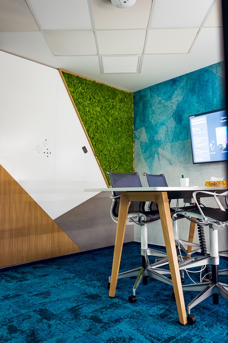 SAP și-a dorit să realizeze pentru cei 156 de specialiști din Timișoara un mediu de lucru modern, cald, inovator și propice pentru performanță. Pe langă birourile ultra moderne cu reglaj pe înălțime, scaunele ergonomice și sistemele de iluminare smart, s-au folosit materiale de design care aduc caldură întregului spațiu: lemn, materiale textile calde, mușchi vegetal și plante de mari dimensiuni. Pereții tapițați sau placați multi-funcțional aduc spațiului inovația și ingeniozitatea de a realiza totul în mod plăcut și util.