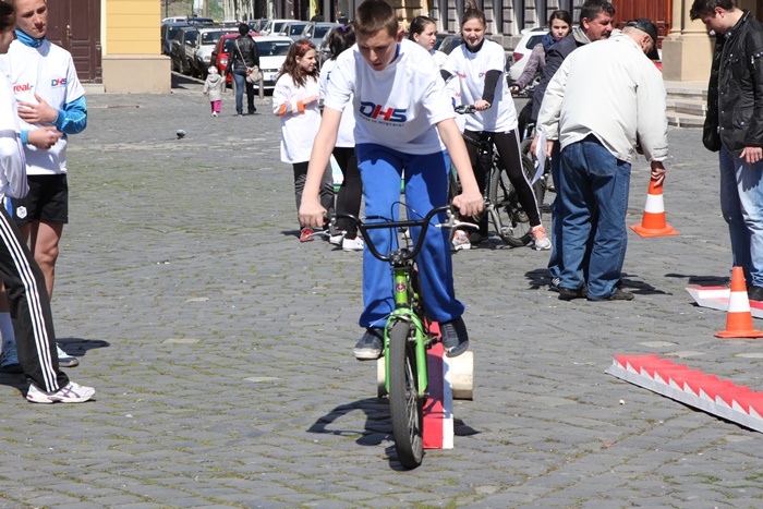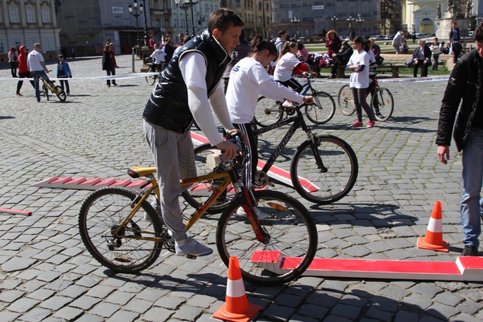 A treia editie a concursului i-a adunat pe elevii timisoreni in Piata Unirii. Veniti cu bicicletele de acasa, acestia au demostrat ca stapanesc bine mersul pe doua roti si pot face fata cu usurinta piedicilor pe care le intalnesc in cale.
