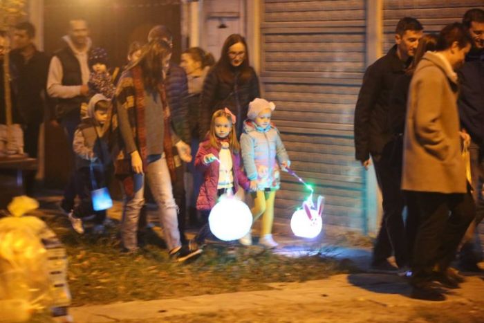 Dupa lasarea intunericului copiii, insotiti de parinti, bunici si dascali, au pornit in ‘turul lampioanelor aprinse’, prin curtea Montessori Haus.
