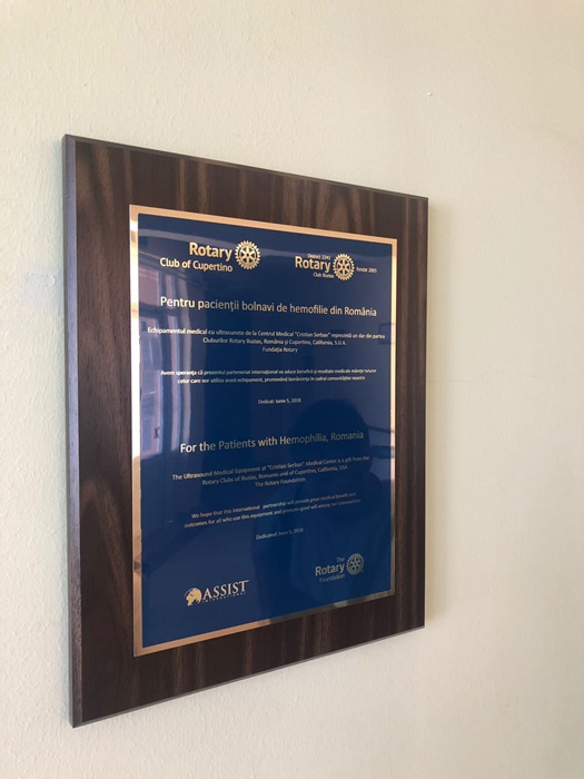 ‘Clubul Rotary din California, Statele Unite ale Americii si Clubul Rotary din Buzias au colaborat si au reusit in cele din urma sa faca aceasta achizitie, pe care si-au propus-o. Este vorba despre un ecograf de foarte buna calitate, care la ora actuala are intrebuintari numeroase dar, in mod special la noi va servi in primul rand bolnavii cu hemofilie prin imaginile care se obtin care orienteza tratamentul medicamentos sau ortopedic si chiar interventiile chirurgicale. Este, deci, de mare utilitate pentru identificarea situatiei diagnostice a articulatiilor dar in acelasi timp ofera niste criterii pe baza carora se stabileste tratamentul cel mai potrivit pentru bolnavul respectiv. Este practic o prelungire de mult mai mare sensibilitate si specificitate a examenului articular’, a declarat, pentru opiniatimisoarei.ro, prof. dr. Margit Serban.
