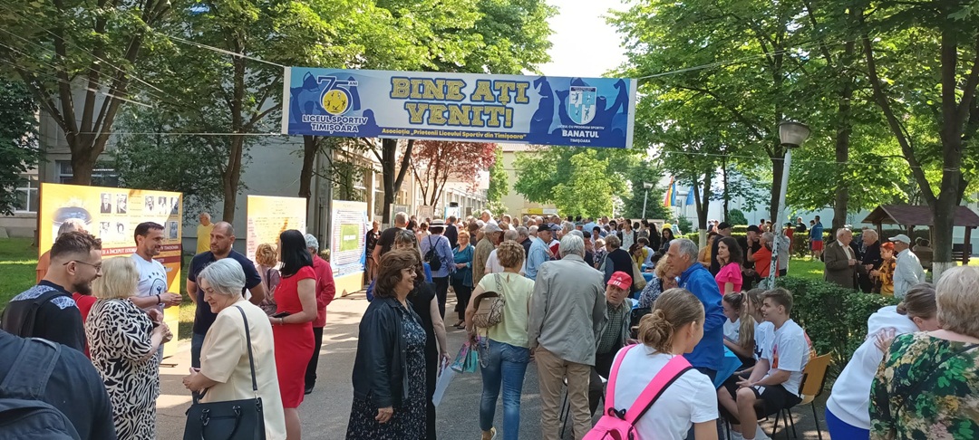 “Cei 75 de ani inseamna in primul rand 75 de generatii, si fiecare generatie cu rezultatele ei. Inseamna mult mai multe decat 75 de povesti si foarte foarte multe suflete care astazi s-au reunit si s-au intors la scoala de unde au plecat. E un eveniment pe care noi il pregatim de un an de zile, e dedicat scolii si absolventilor sai asa ca toata lumea este prezenta. Astazi incepe chiar un turneu de fotbal pentru cei mici, avem o grupa de 2013 foarte performanta, care se va intalni cu echipe mari si din tara si din strainatate. Turneul tine pana duminica. Avem rezultate foarte bune. Tocmai ieri fetele de la fotbal s-au intors de la turneul final, unde au luat locul 2 pe tara. Antrenorul fetelor este domnul profesor Calin Rosenblum, fotbalist in primul rand al Timisoarei, absolvent al Liceului Sportiv, profesor aici, si foarte multi ani director. Sunt multe emotii pentru toti cei prezenti“, a spus pentru opiniatimisoarei.ro, Ramona Roman, director al LPS Banatul Timisoara.