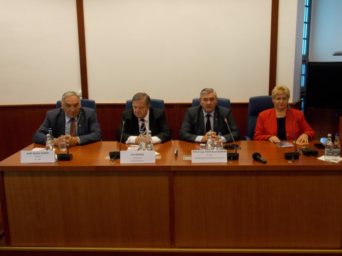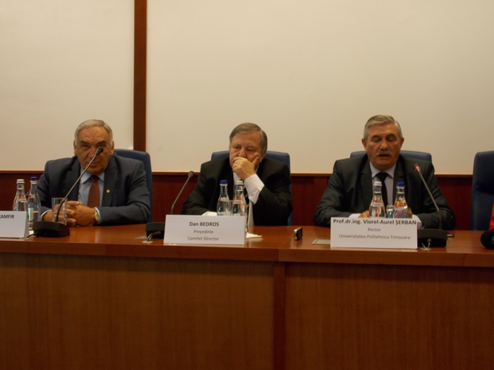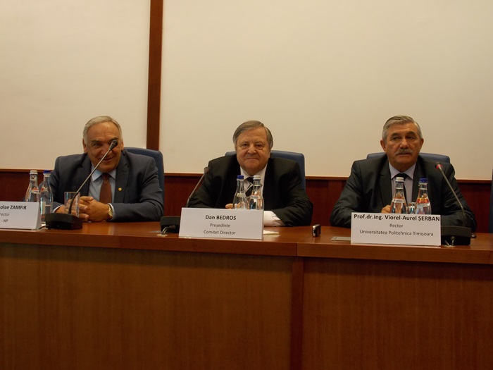 “Specificificul acestui board fata de alte structuri intalnite in alte universitati il reprezinta tocmai faptul ca nu se rezuma doar la a adopta sau a sabili strategii pe domeniile strategice ale scolii noastre politehnice, ci el consta in faptul ca membrii acestui board sunt implicati in activitatea curenta a scolii. In aceasta toamna am declansat doua mari proiecte. Unul dintre proiecte se numeste Grant pentru tineri cadre didactice ai scolii noastre politehnice, cu finantare din venituri proprii si din mediul privat. Si cand am spus mediul privat va dati seama ca jumatate din cei aproape 200.000 de euro care vor fi pusi la dispozitia tinerilor care vor castiga aceste proiecte, vor veni de la aceste companii conduse de membrii Comitetului Director. Si in acelas palier al preocuparilor, as vrea sa mentionez si faptul ca tot in aceasta toamna vom finaliza un alt proiect, si anume, vom dota cu un numar important de calculatoare toate laboratoarele. Practic le vom schimba, pentru ca au trecut anii de la ultima mare actiune care am facut-o. Si acolo, pe langa cele 500 de calculatoare pe care noi le cumparam din venituri proprii, vor veni inca probabil acelasi numar de la companii, care fie ne dau calculatoare de o generatie apropiata, fie de ultima generatie, astfel incat sa asiguram studentilor nostri capacitatea si posibilitatea de a studia la cel mai inalt nivel”, a spus Viorel Serban, rectorul Universitatii Politehnica Timisoara.