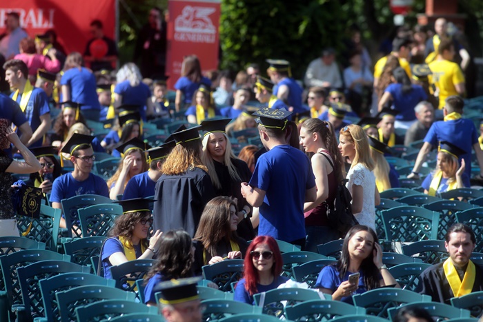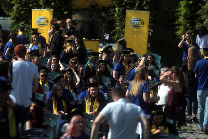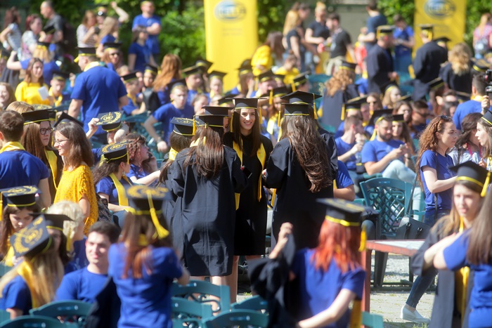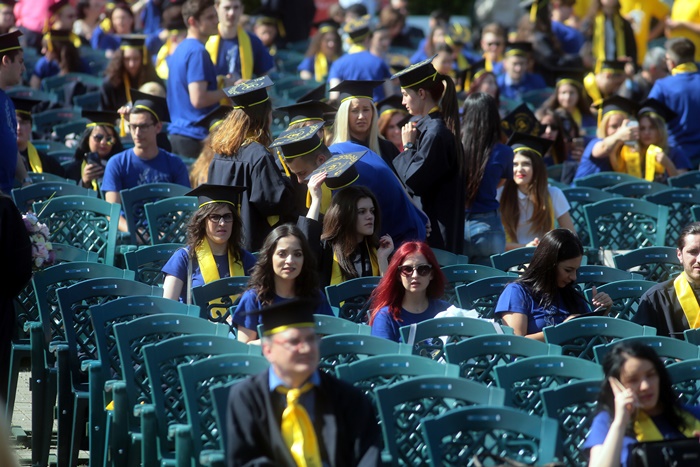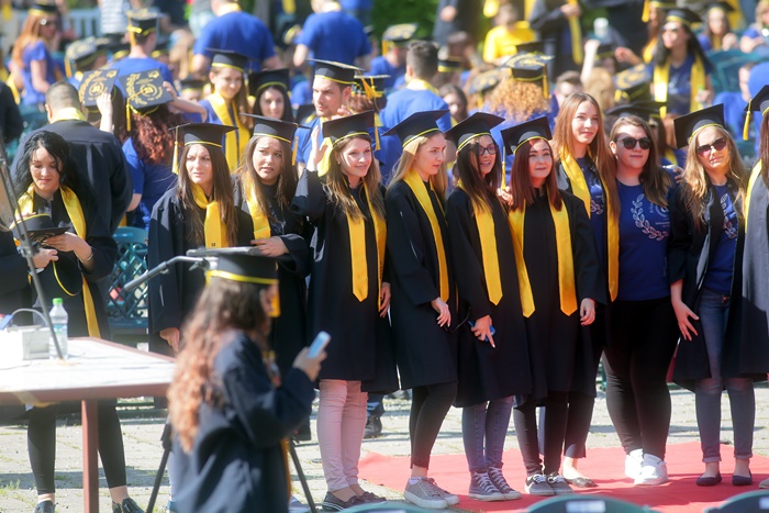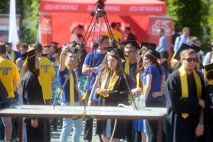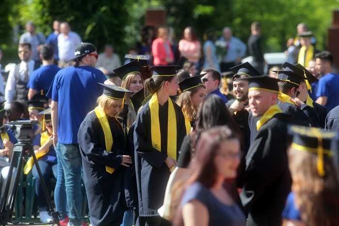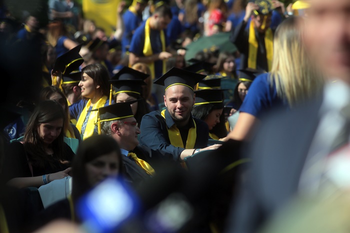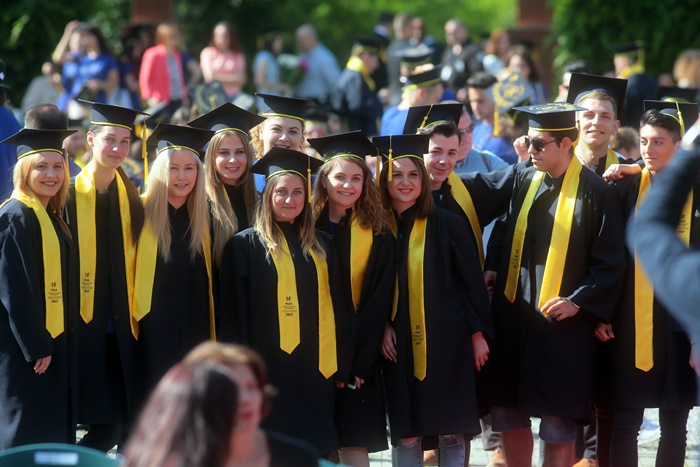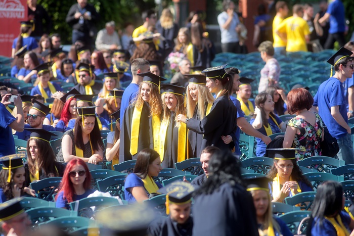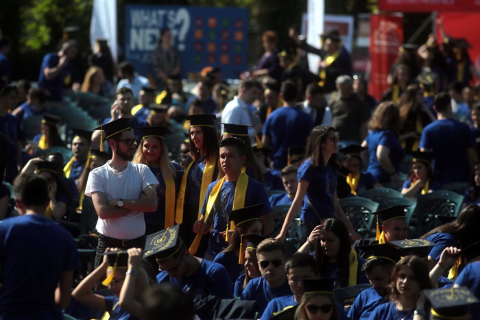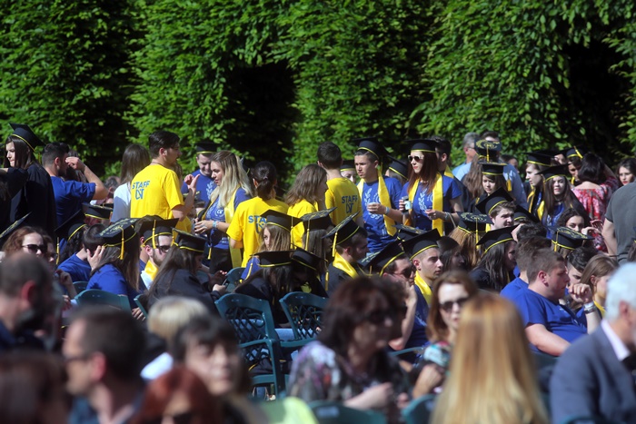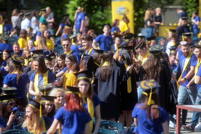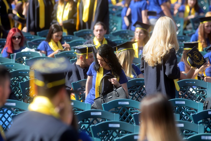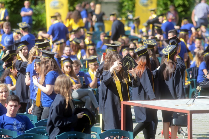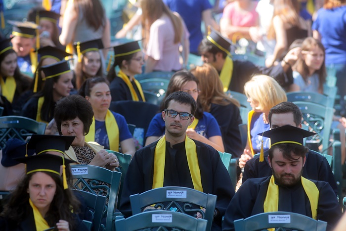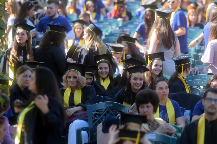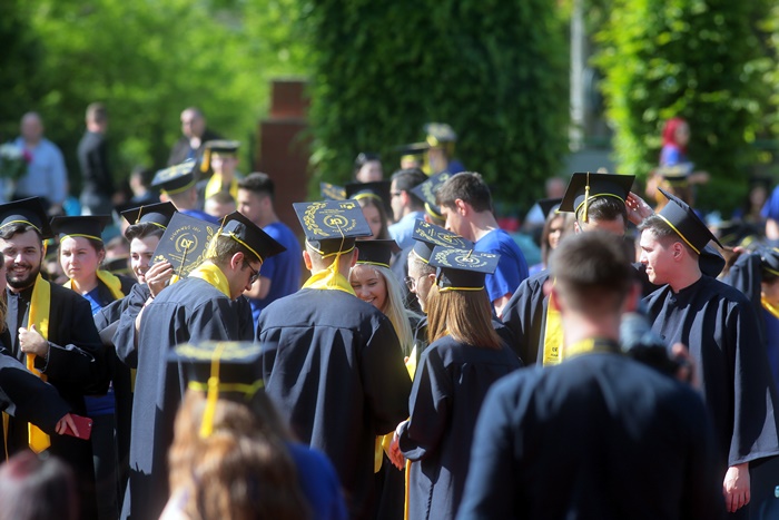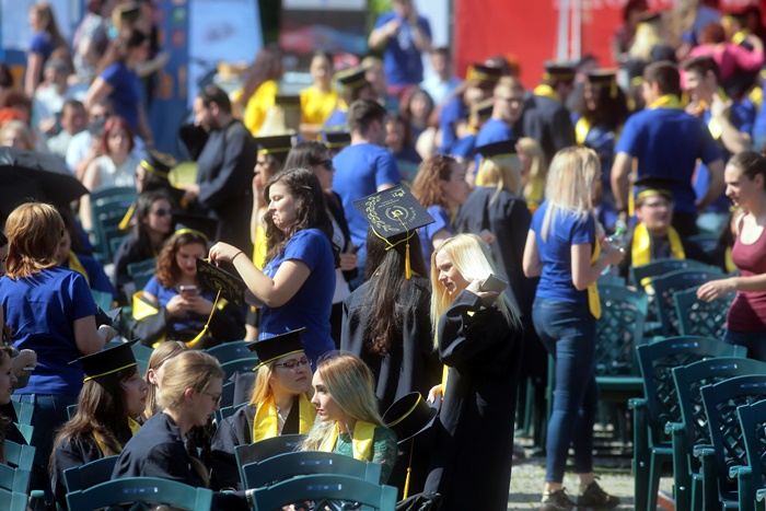 TIMISOARA. Imbracati in robe si purtand toci deasupra capului, plini de emotie si speranta, absolventii facultatilor din cadrul Universitatii de Vest din Timisoara s-au adunat miercuri la un eveniment important din viata lor – Ceremonia de absolvire si de intrare in comunitatea de alumni.