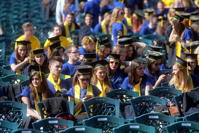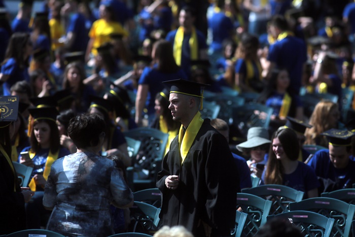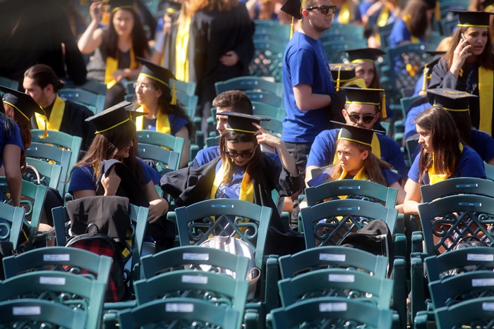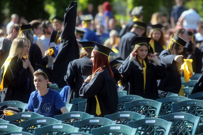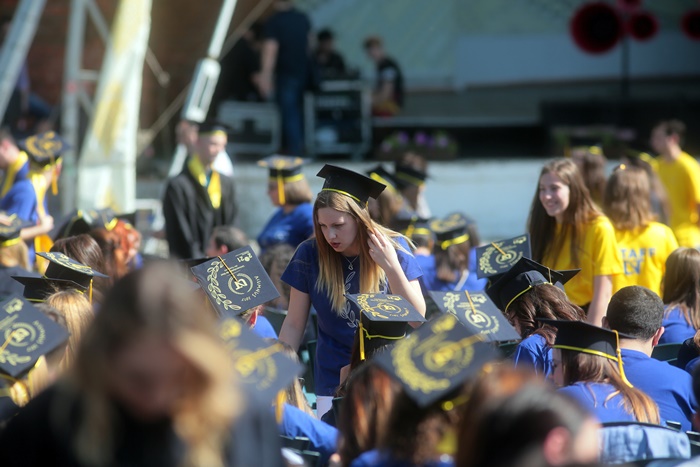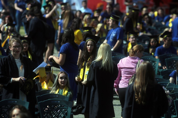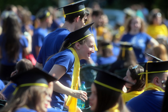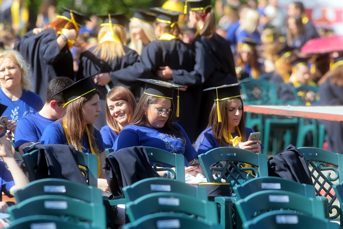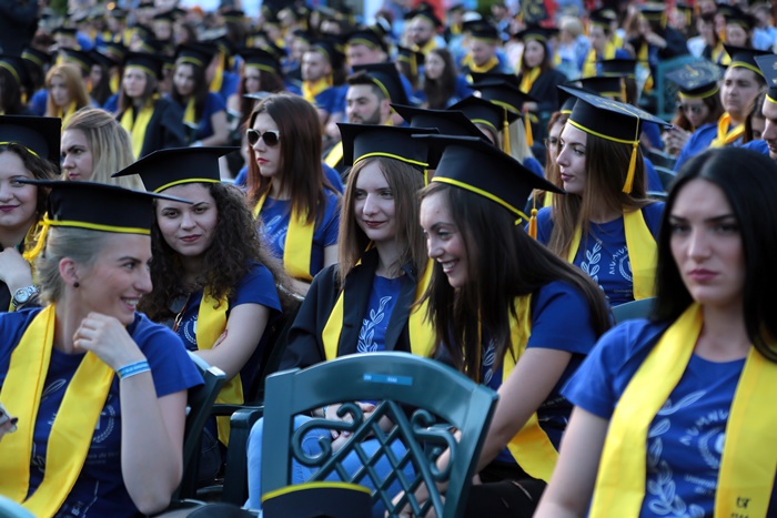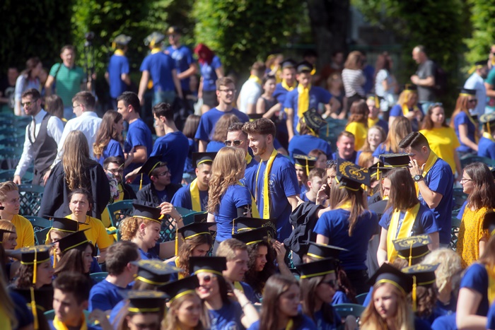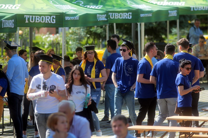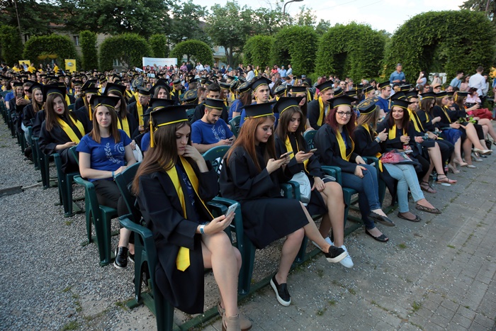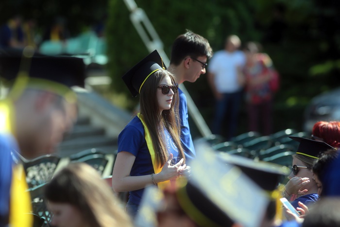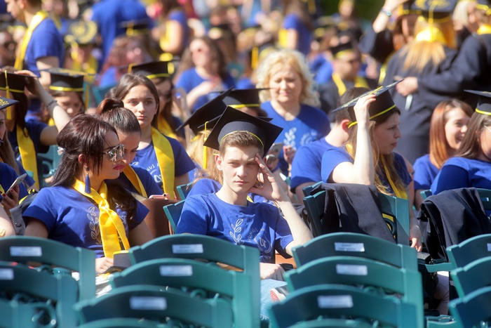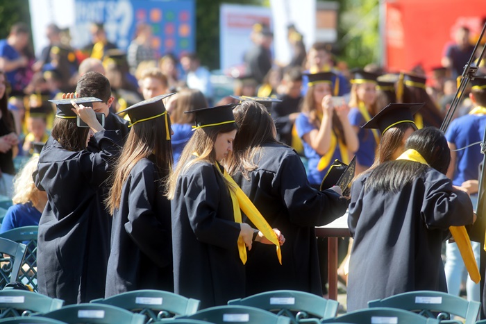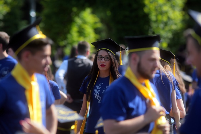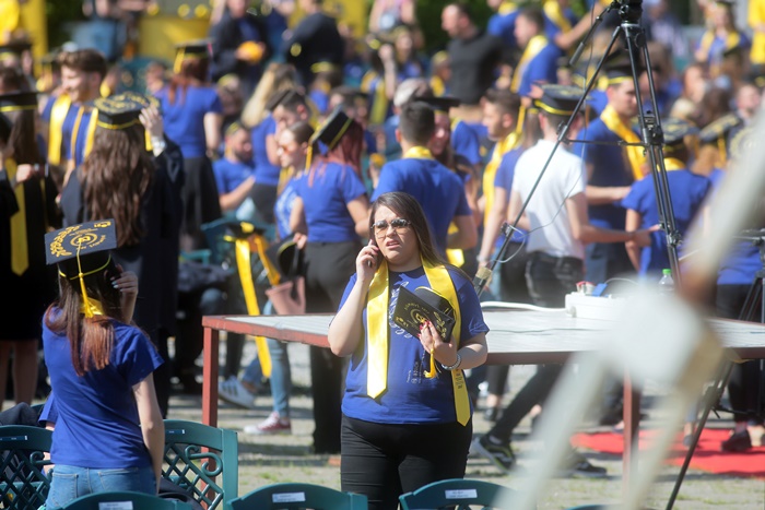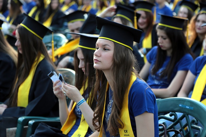 TIMISOARA. Imbracati in robe si purtand toci deasupra capului, plini de emotie si speranta, absolventii facultatilor din cadrul Universitatii de Vest din Timisoara s-au adunat miercuri la un eveniment important din viata lor – Ceremonia de absolvire si de intrare in comunitatea de alumni.