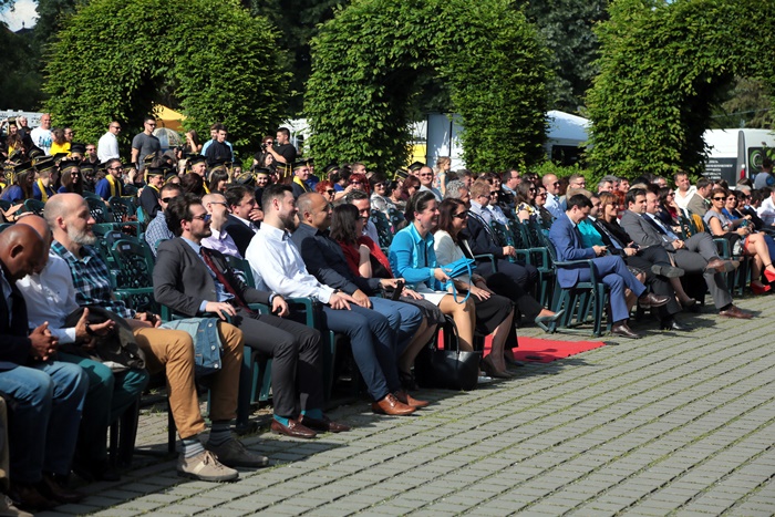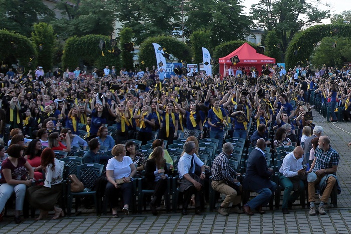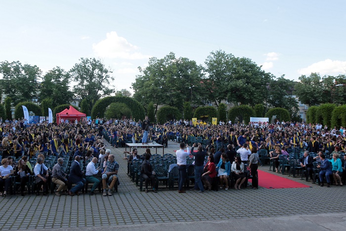 Alaturi de studentii generatiei 2017, in Parcul Rozelor s-au aflat si absoventi din generatiile anterioare, profesorii care i-au calauzit pe drumul desavarsirii universitare, parinti si prieteni.