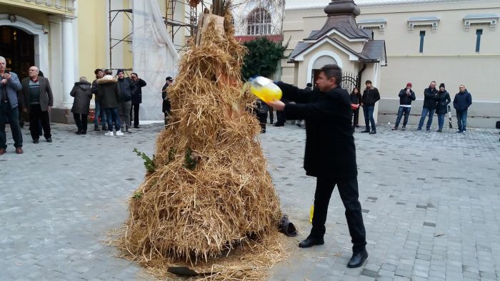 Au fost flacari uriase, ploaie de scantei si colinde la Biserica sarbeasca din centrul istoric al Timisoarei. Zeci de sarbi s-au adunat sa participe la ritualul din Ajunul Craciunului. Cei mai mici au cantat colinde si au aruncat boabe de grau in foc, pentru ca asupra familiilor lor sa se abata belsugul. Potrivit credintei, cu cat flacarile sunt mai inalte si cu cat ies mai multe scantei, cu atat anul va fi mai bogat.
