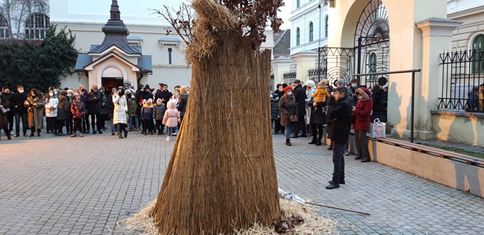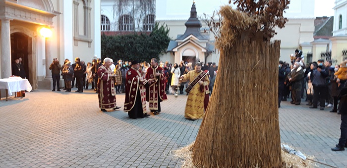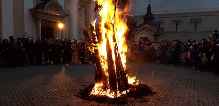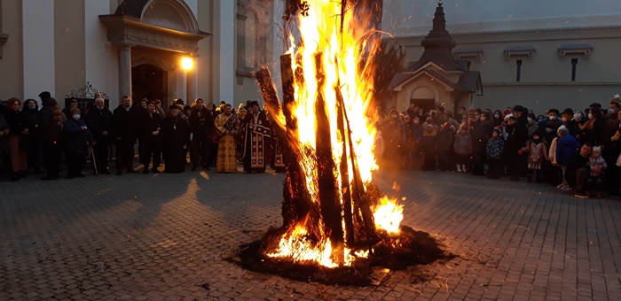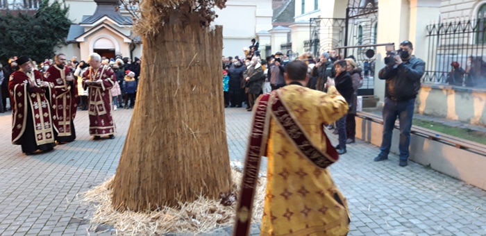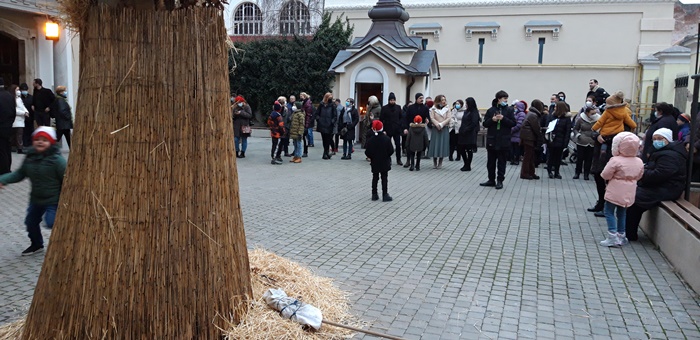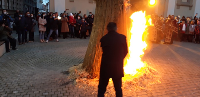 Au fost flacari uriase, ploaie de scantei si colinde la Biserica sarbeasca din centrul istoric al Timisoarei.