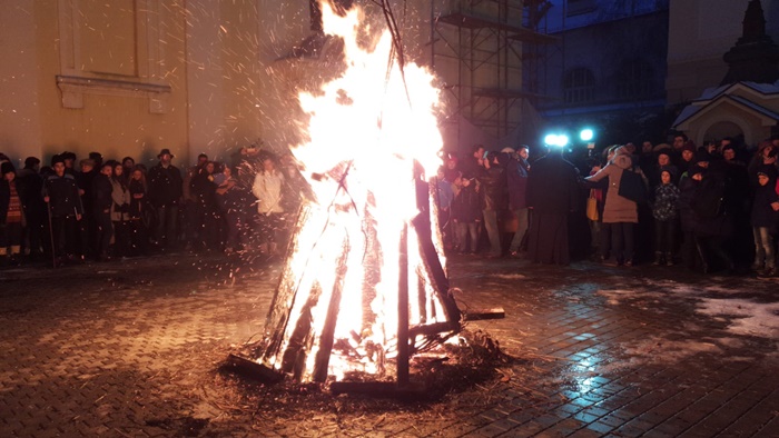 TIMISOARA. Inca un val de sarbatori in Banat! Bucurie mare pentru sarbii din Timisoara, care au aprins, duminica seara, in Ajunul Craciunului pe rit vechi, badnjak-ul, traditie din mosi stramosi ce simbolizeaza un nou inceput, sanatate si bogatie.