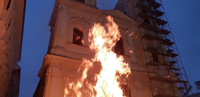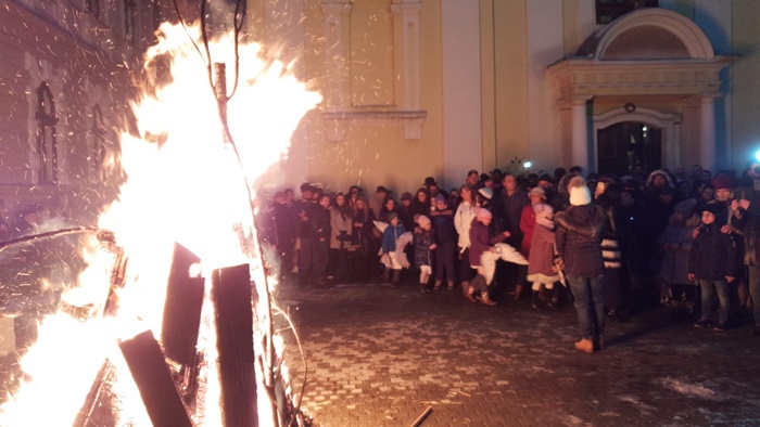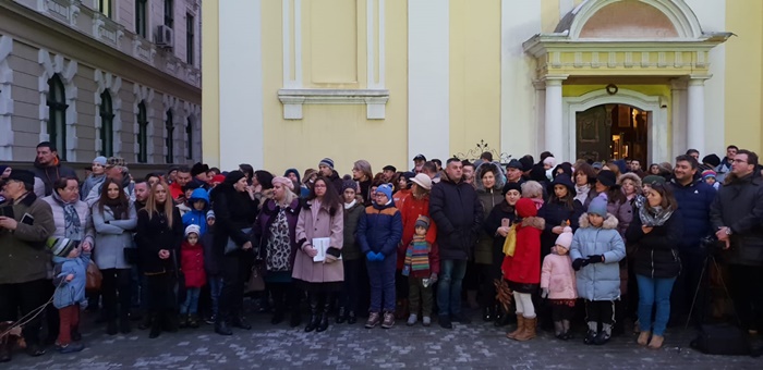 Au fost flacari uriase, ploaie de scantei si colinde la Biserica sarbeasca din centrul istoric al Timisoarei.