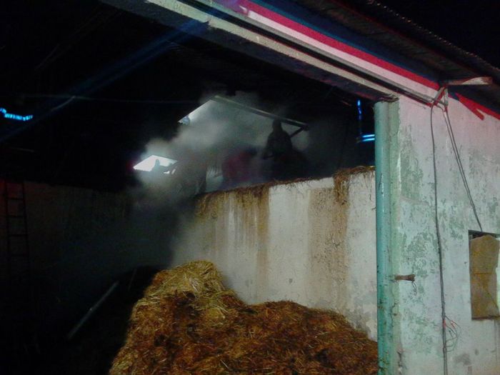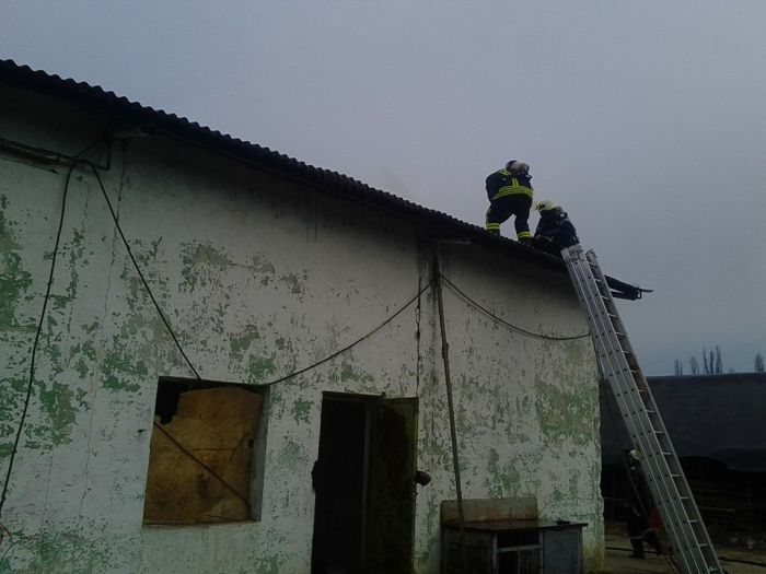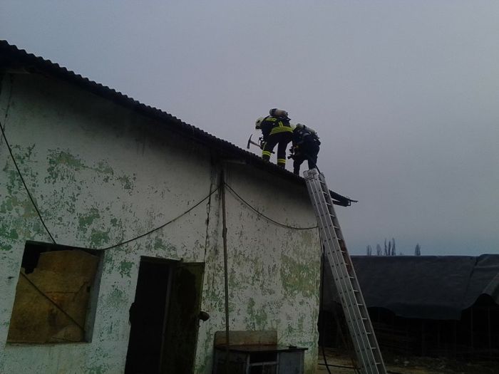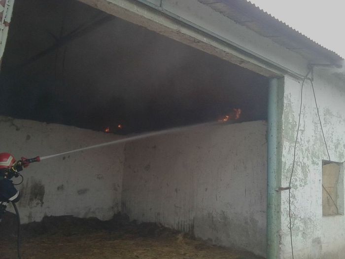 Pompierii au decopertat acoperisului pe o suprafata de aproximativ 150 mp, apoi au localizat si lichidat incendiul. In total au ars aproximativ 350 de baloti de paie si au fost salvati 20 de porci.