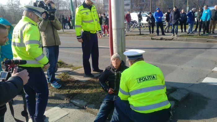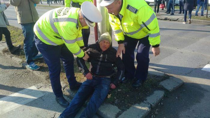 Politistii aflati in zona au intervenit rapid si l-au ridicat din mijlocul strazii. L-au sprijinit de un stalp si au cerut ajutorul medicilor de pe SMURD.