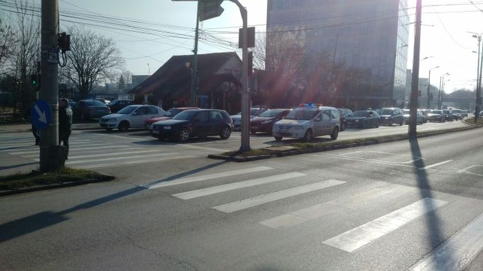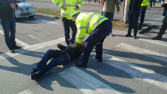 TIMISOARA. Momente de panica intr-o intersectie din Timisoara, unde un barbat s-a intins pe jos, pe asfalt, in mijlocul unei treceri de pietoni.