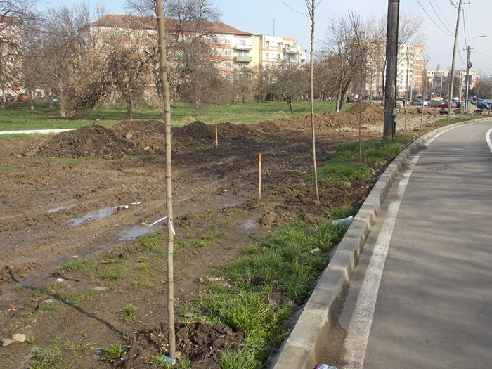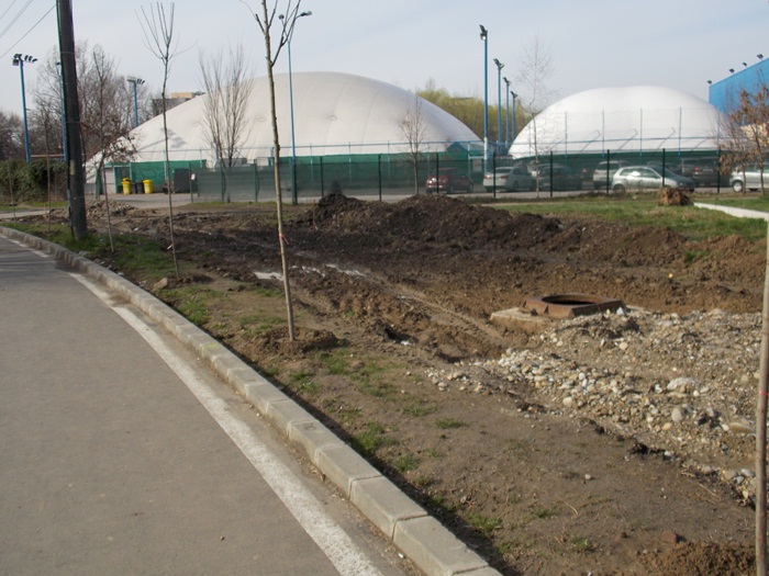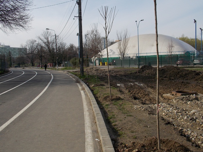 Nici plantarea de copaci nu s-a terminat langa arena timisoreana, chiar daca au fost pusi salcami violet pe inelele interioare si exterioare ale pistelor pietonale.