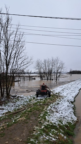Se intervine pentru gestionarea acestei situații de urgență cu o autospecială de serviciu, două autospeciale de lucru, 2 motopompe remarcabile și 2 motopompe transportabile, 1 încărcător cu saci, 1 buldoexcavator, cu un efectiv de 27 pompieri.