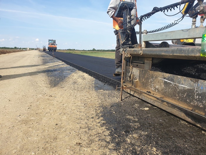 “Echipele antreprenorului de pe santierul variantei de ocolire Timisoara Sud, Tirrena Scavi, au inceput asternerea stratului de baza de asfalt pe inca un sector al lucrarii, de data aceasta in zona localitatii Chisoda“, transmit reprezentantii Directiei Regionale de Drumuri si Poduri Timisoara.