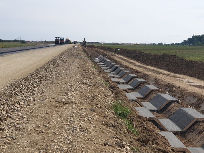 Au fost executate si alte lucrari in ultima perioada pe traseul viitoarei centuri de sud a Timisoarei: umpluturi cu pamant, consolidari cu piatra bruta, sapaturi si betonari la sanțurile trapezoidale, diferite lucrari la podete si pasaje.