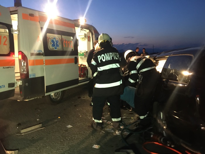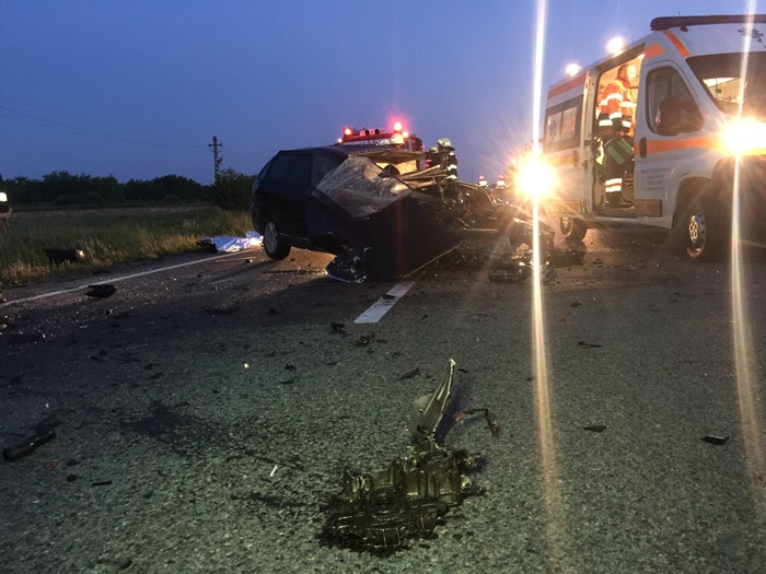 TIMISOARA. Teribil accident duminica dimineata pe o sosea din Timis. Doua masini s-au facut zob, iar 2 oameni au murit si alti 3 au fost raniti.