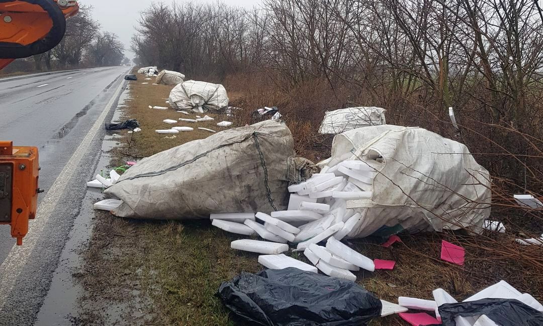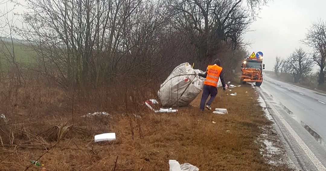 TIMISOARA. Tupeu fara margini pentru soferul unui camion care a abandonat mai multi saci cu deseuri pe marginea drumului national intre Timisoara si Arad.