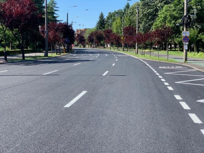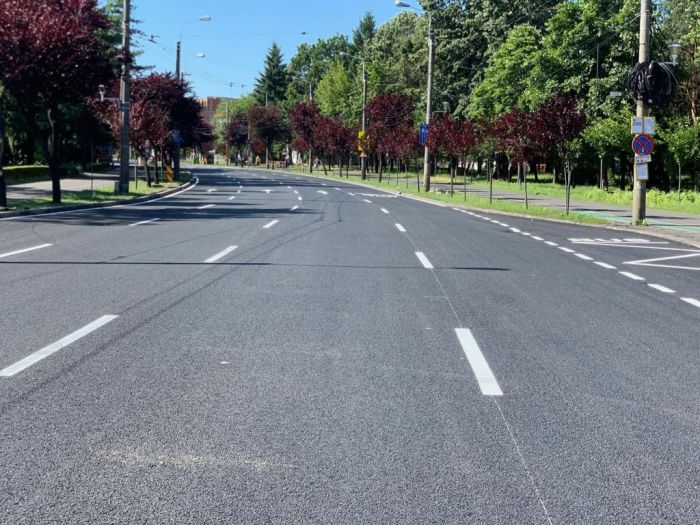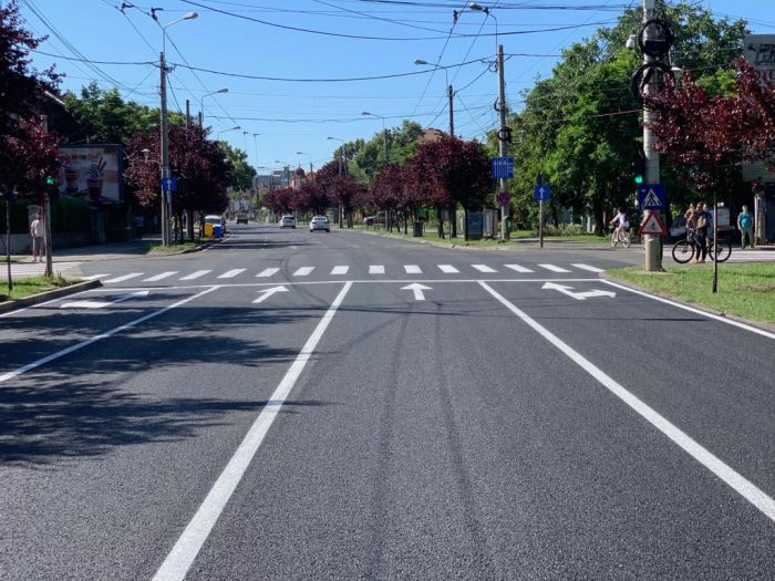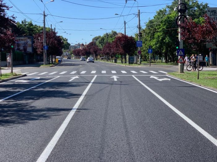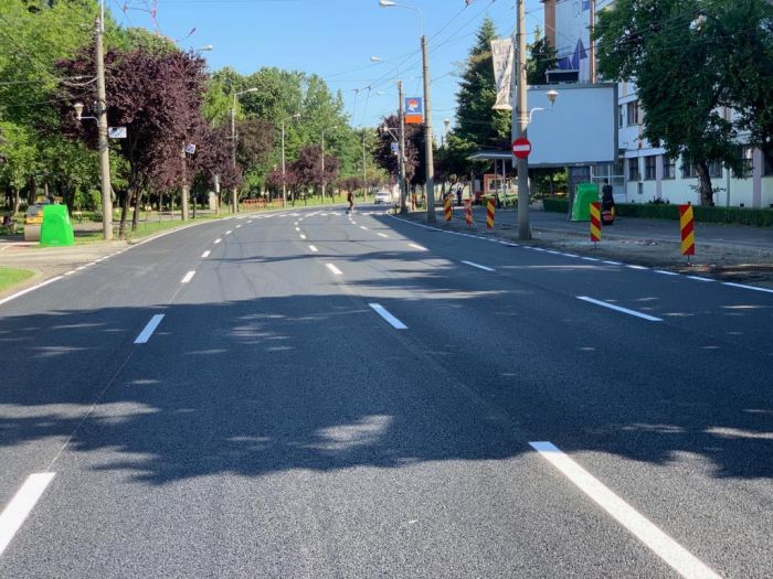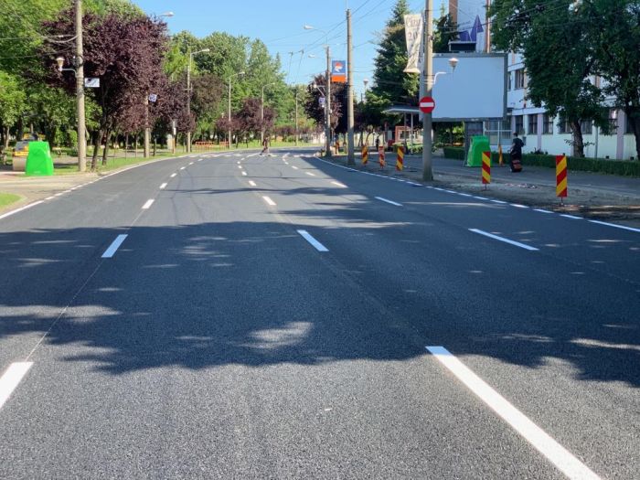 TIMISOARA. Dupa mai multe saptamani in care s-a circulat cu restrictii, soferii pot merge din nou pe strada Cluj, pe 4 benzi. Reprezentantii Societatii de Drumuri Municipale au terminat de turnat stratul final de asfalt, iar vineri noaptea au facut si marcajele.