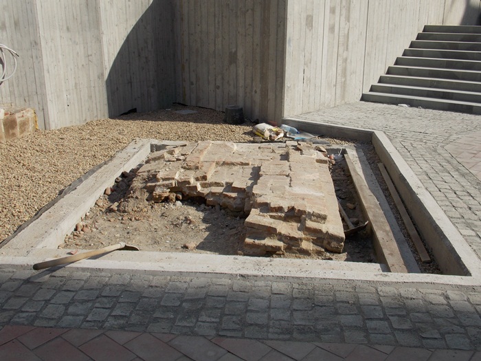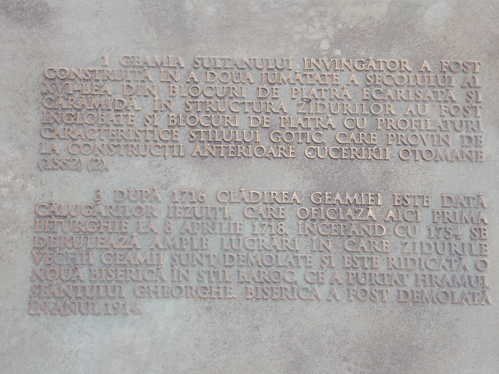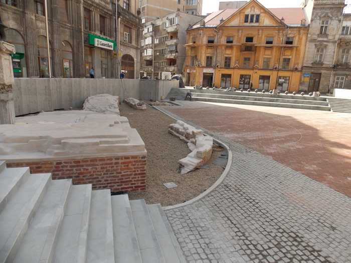 In piata si-a facut loc si o placheta metalica pe care sunt descrise vestigiile gasite de arheologi in piata, si un desen prin care sunt evidentiate.
