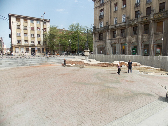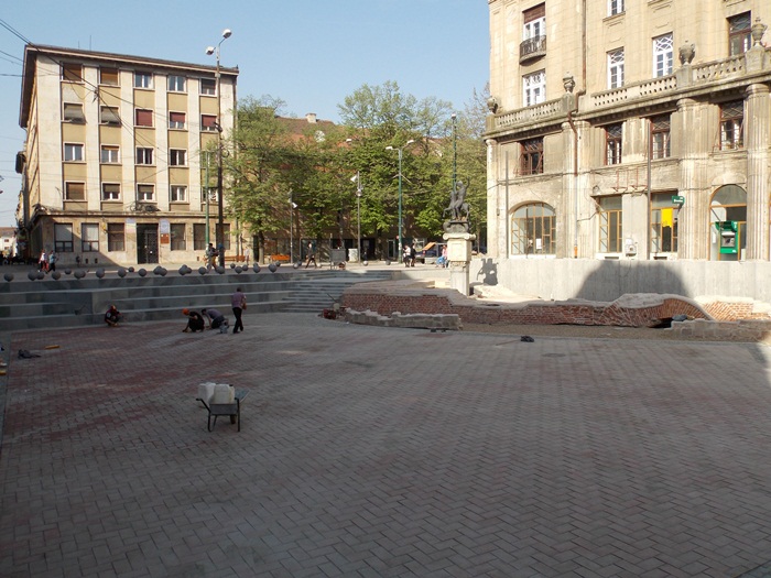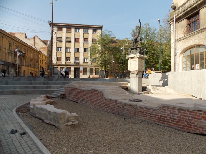 La doua saptamani dupa ce statuia Sfantului Gheorghe a fost mutata, piata cu acelasi nume arata din ce in ce mai bine. Muncitorii au terminat deja punerea pavajului si au trecut la curatarea si spalarea acestuia. In scuarurile care strajuesc piata au fost plantati si cativa pomi.