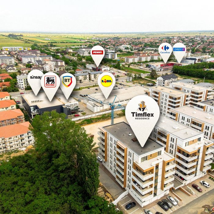 Astfel, dezvoltat la marginea Timisoarei, la intrarea in comuna Giroc, complexul Timflex Residence imbina in cel mai armonios mod linistea si caldura unui camin cu vibratia, functionalitatea si tehnologia moderna. Ansamblul este construit in vecinatatea marilor magazine, a statiilor pentru mijloacele de transport si la doar cateva minute de mers cu masina de cele mai importante institutii din comuna si din Timisoara.